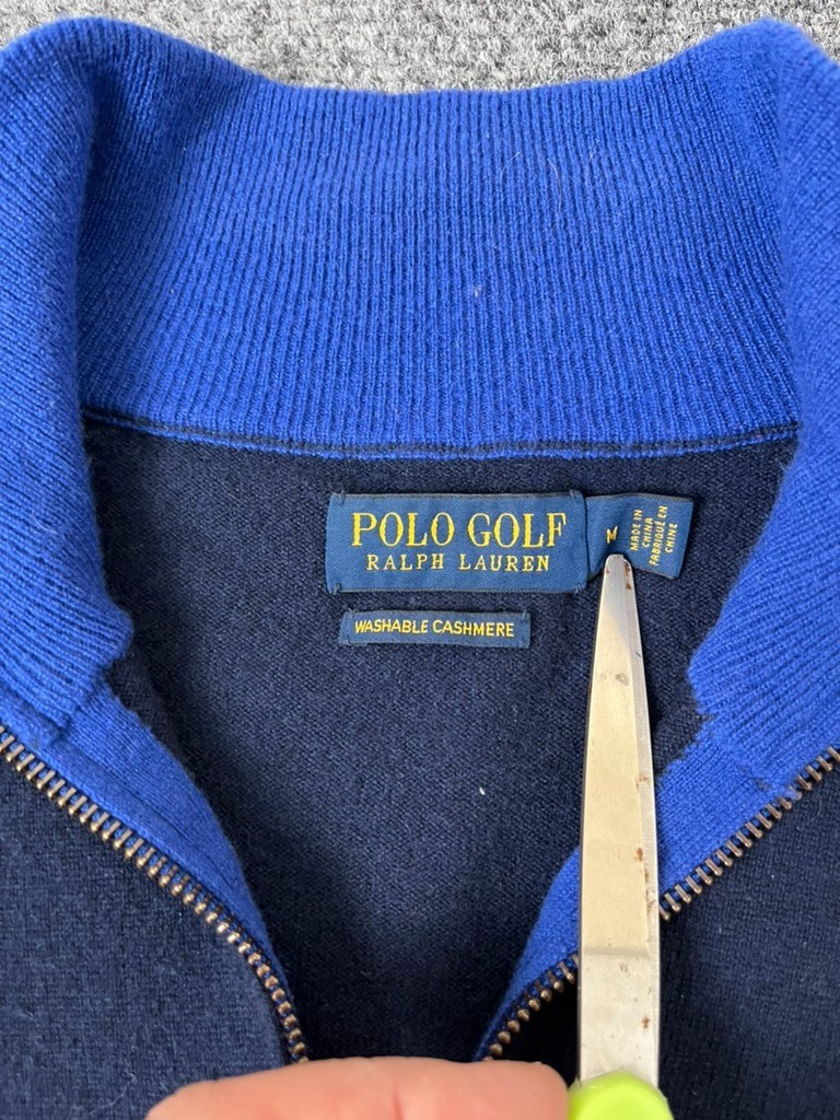 Polo Golf Ralph Lauren Blue 1/4 Zip Washable Cashmere Pullower Sweater M Logo