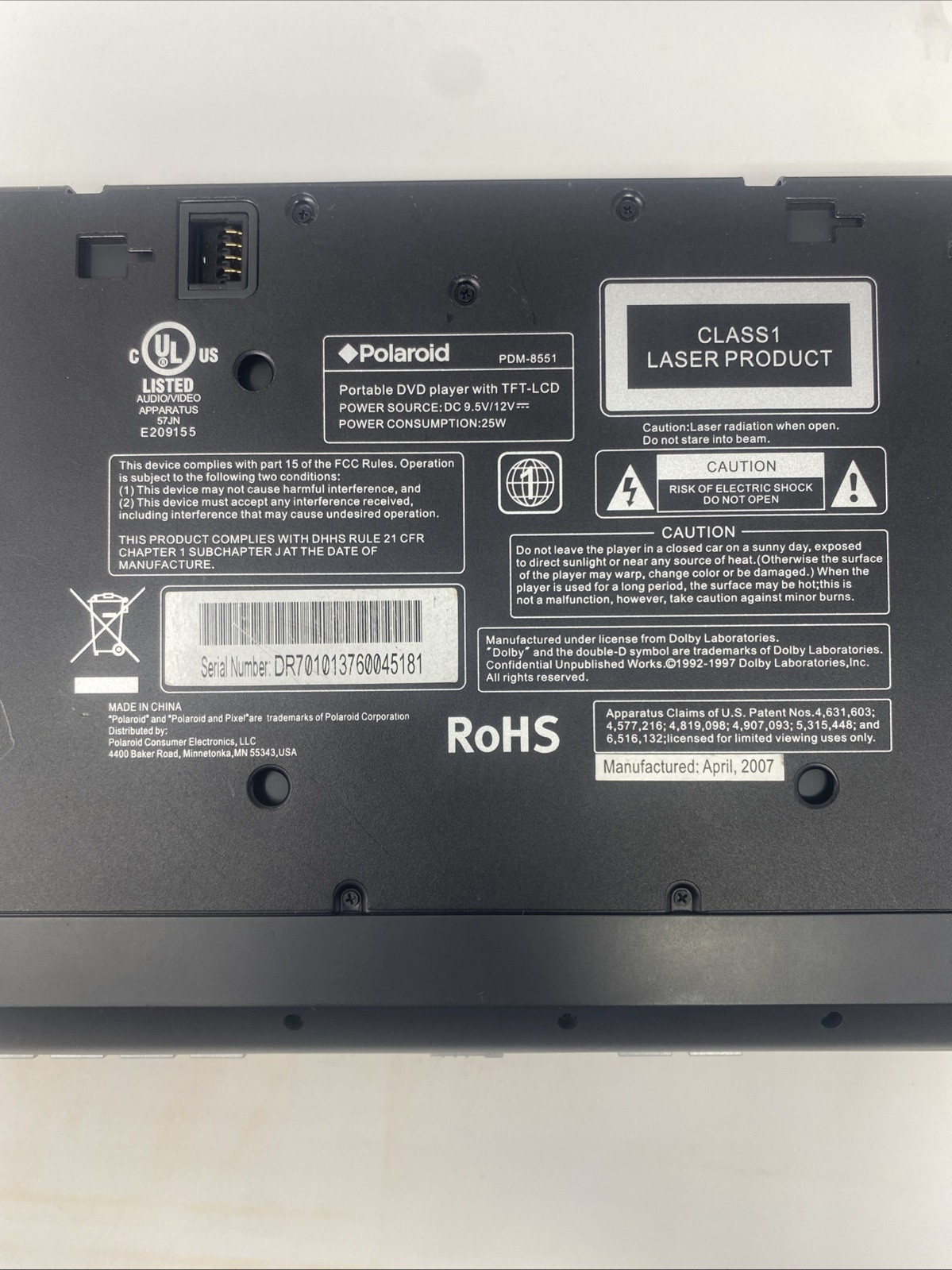 Polaroid PDM-8551 Portable DVD Player 7 With Case Logic Carrying Case