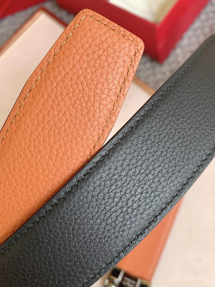 как выглядит NWT Ferragamo Mens Leather Belt Black/Orange фото