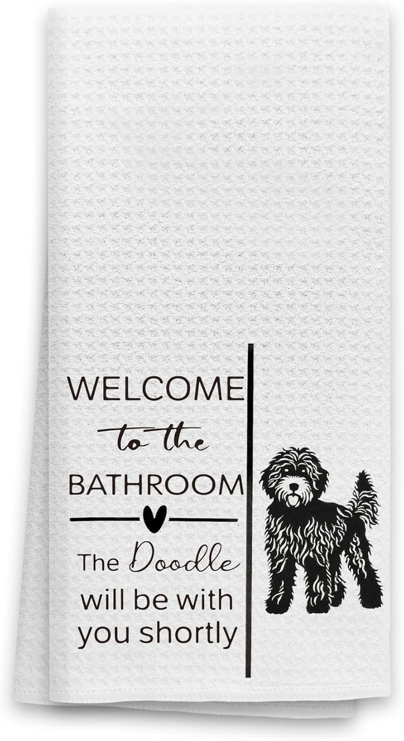 Funny Doodle Bathroom Decor Hand Towels, Goldendoodle Gifts for Dog Lovers, Dog