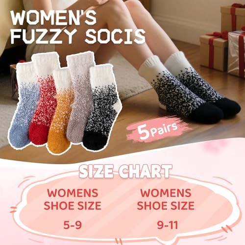 Fuzzy Socks for Women Warm Fluffy Cozy Winter Soft Home 5 Pairs-gradient Combo