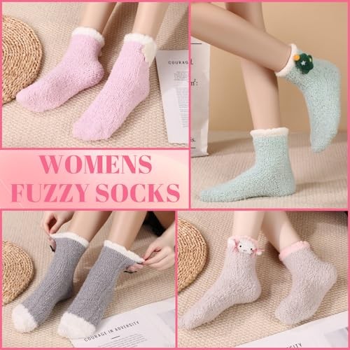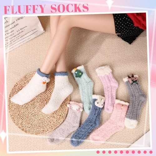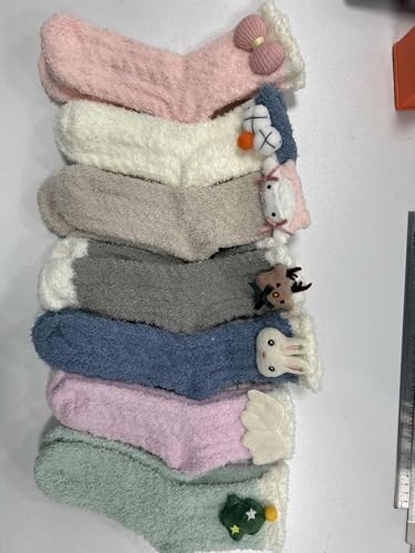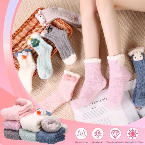 Cute Fuzzy Socks for Women, 7 Pairs Soft Animal Dolls Slipper Socks Winter