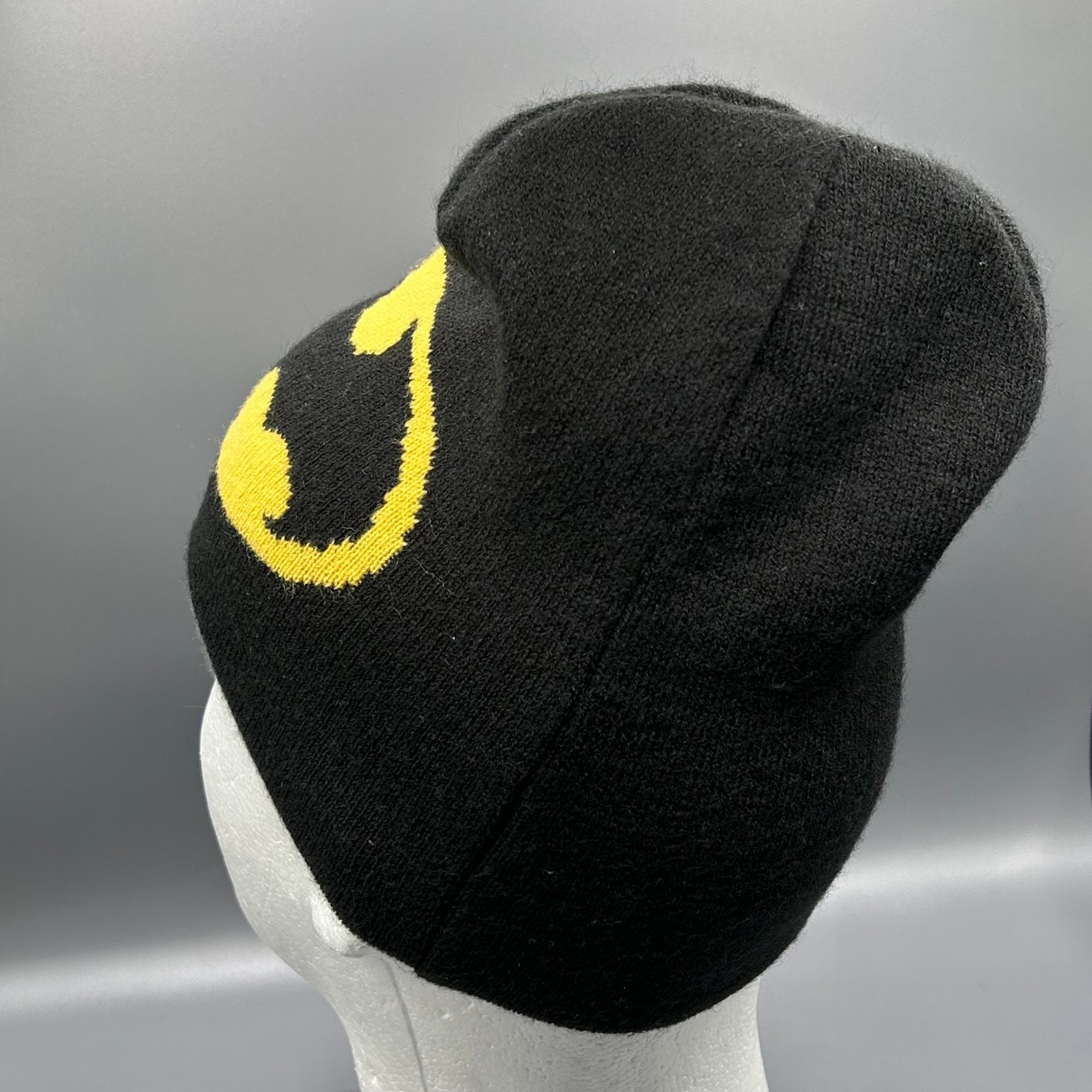 как выглядит Batman Beanie Hat Youth One Size Black Yellow or Gray Black Logo Knit Reversible фото