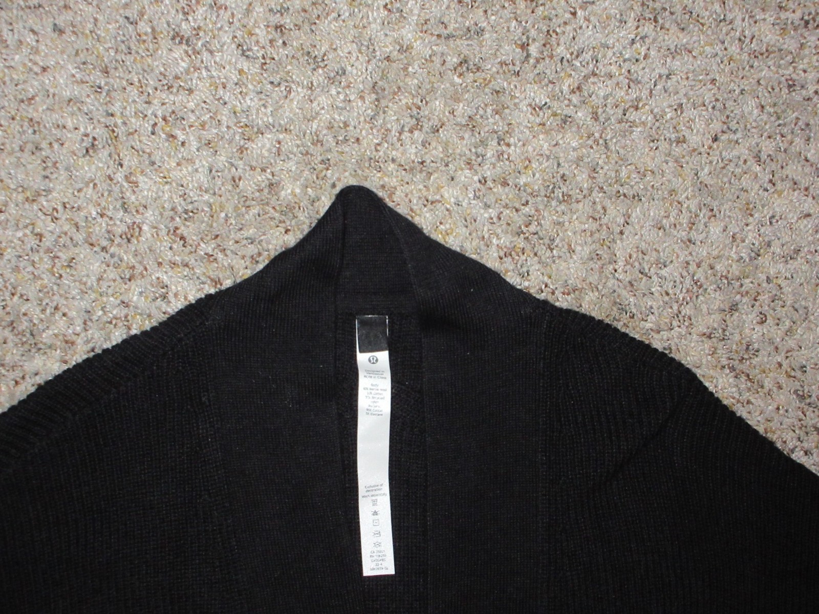 Lululemon Merino Wool-Blend Ribbed Long Wrap Sweater Black Open Front 8 W3GKBS