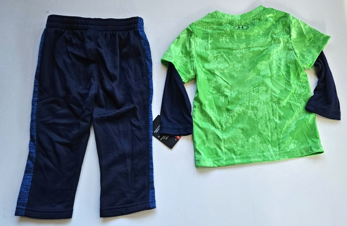 как выглядит UA Under Armour 12M Infant/Toddler Boys 2 Pc Pants Shirt Set Blue Green NWT фото