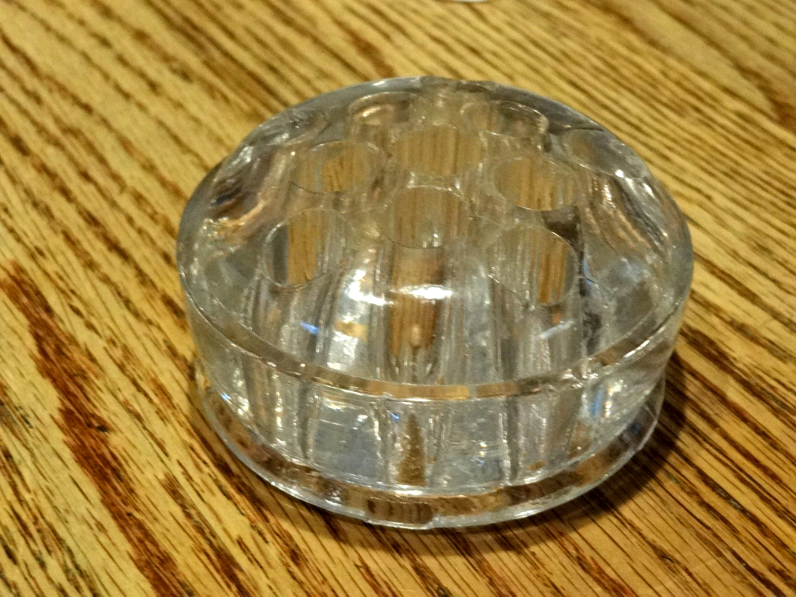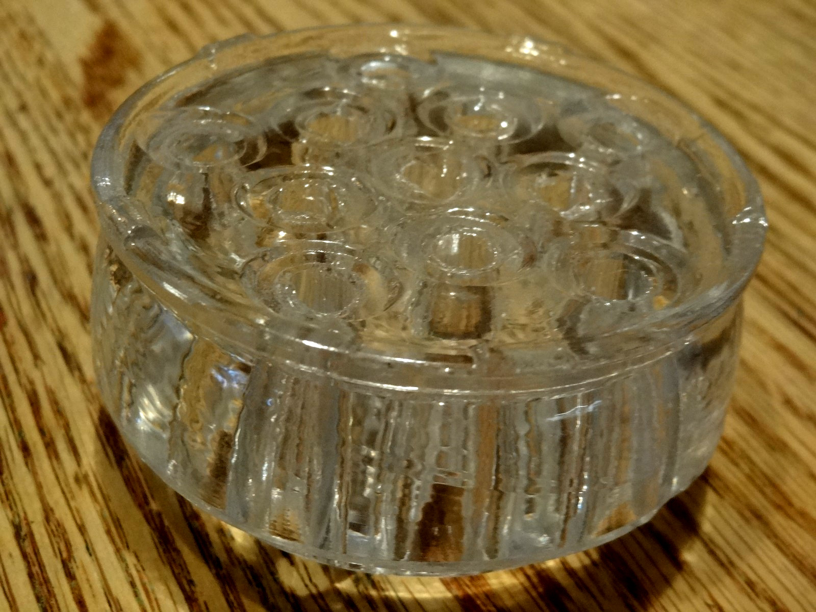 как выглядит Vintage Clear Glass Thick Round Domed 3 Rimmed 11 Hole Flower Frog  Footed фото