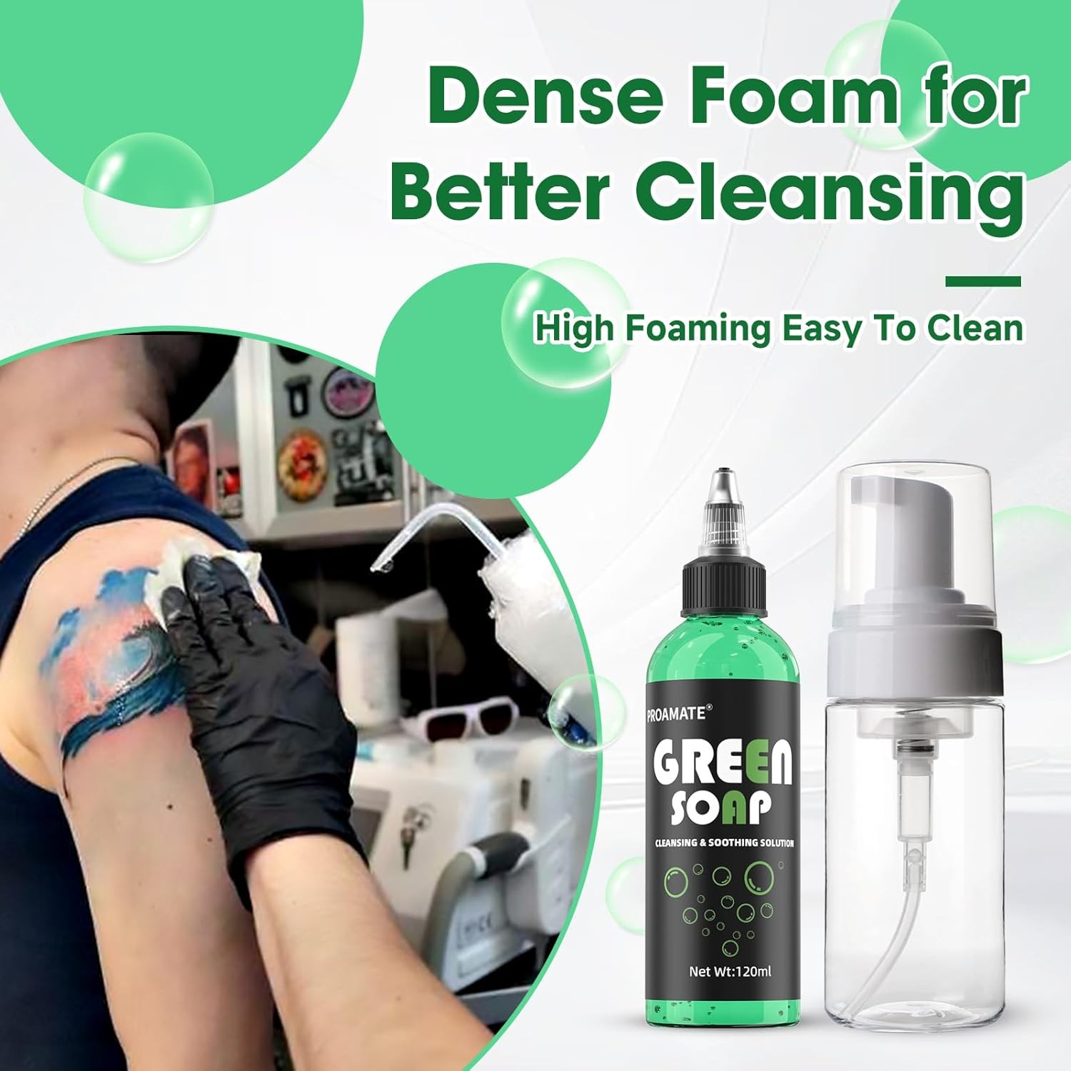 Green Tattoo Soap 4OZ with Foaming Bottle 120ml, Tattoo Soap Tattoo Supplies for