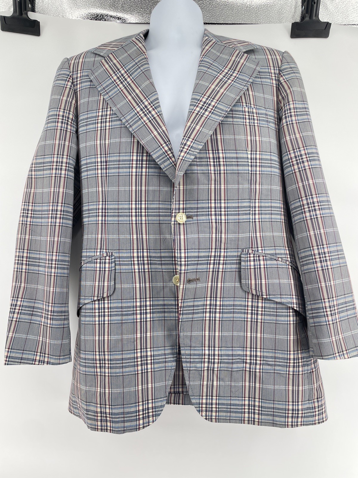 VTG Johnny Carson Tailored for Rich s Mens Plaid Blazer Red Navy