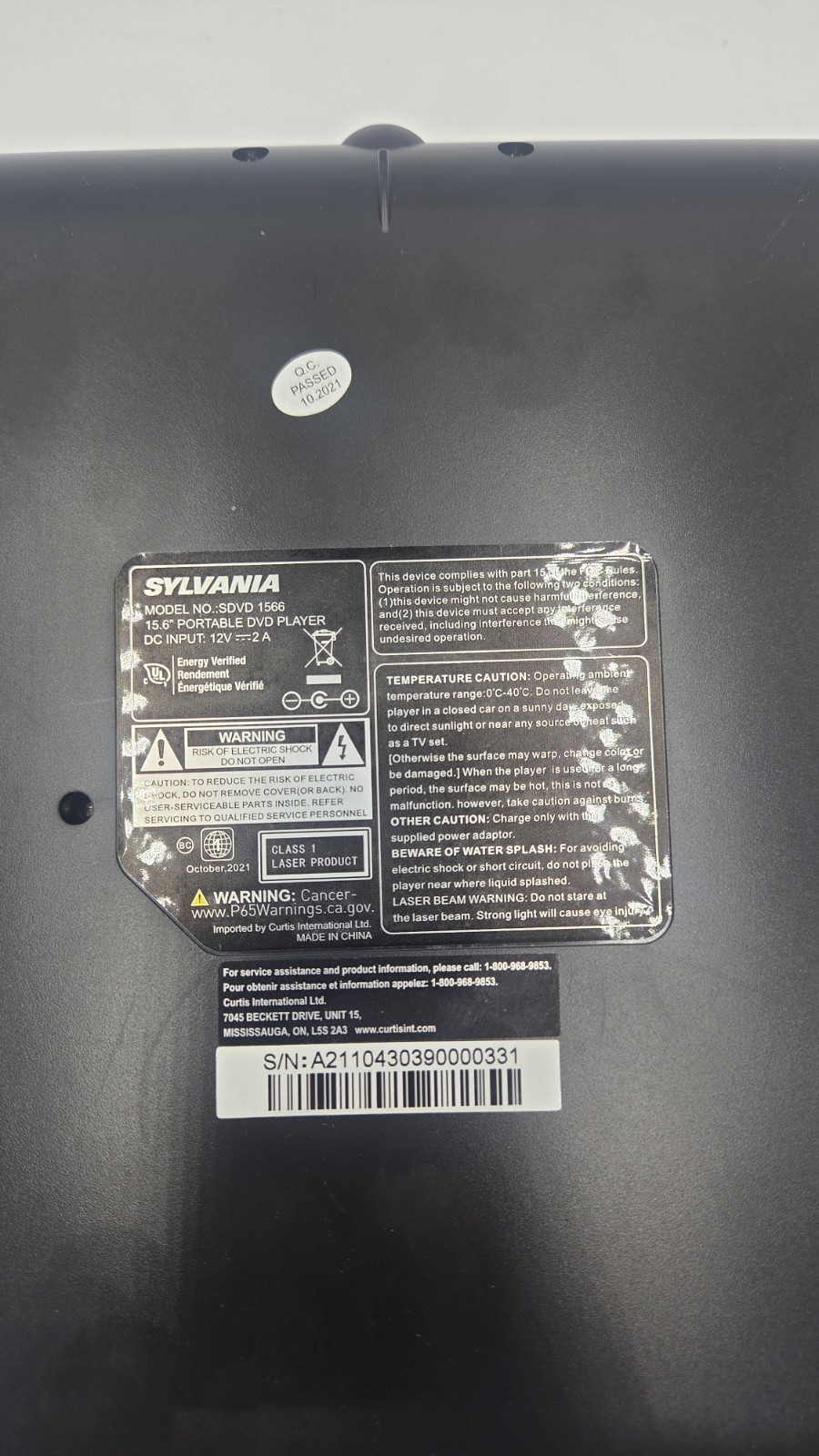 Sylvania Portable DVD Player 15.6 Swivel Screen SDVD1566 Black