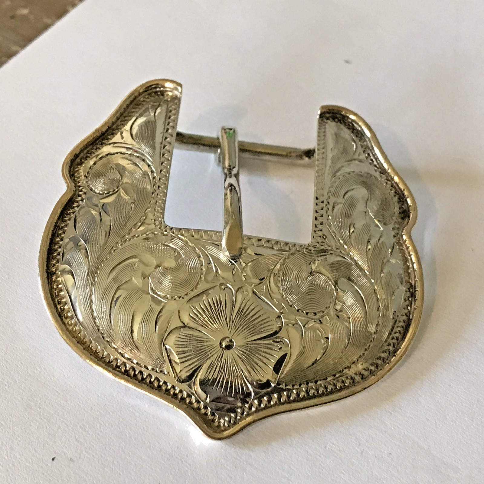 как выглядит .8 Sterling Silver Western Belt Buckle Floral Engraved Mexico signed BC 22.9g фото