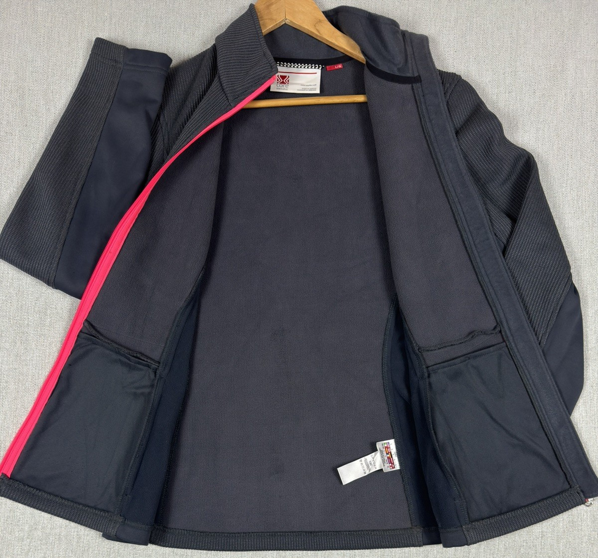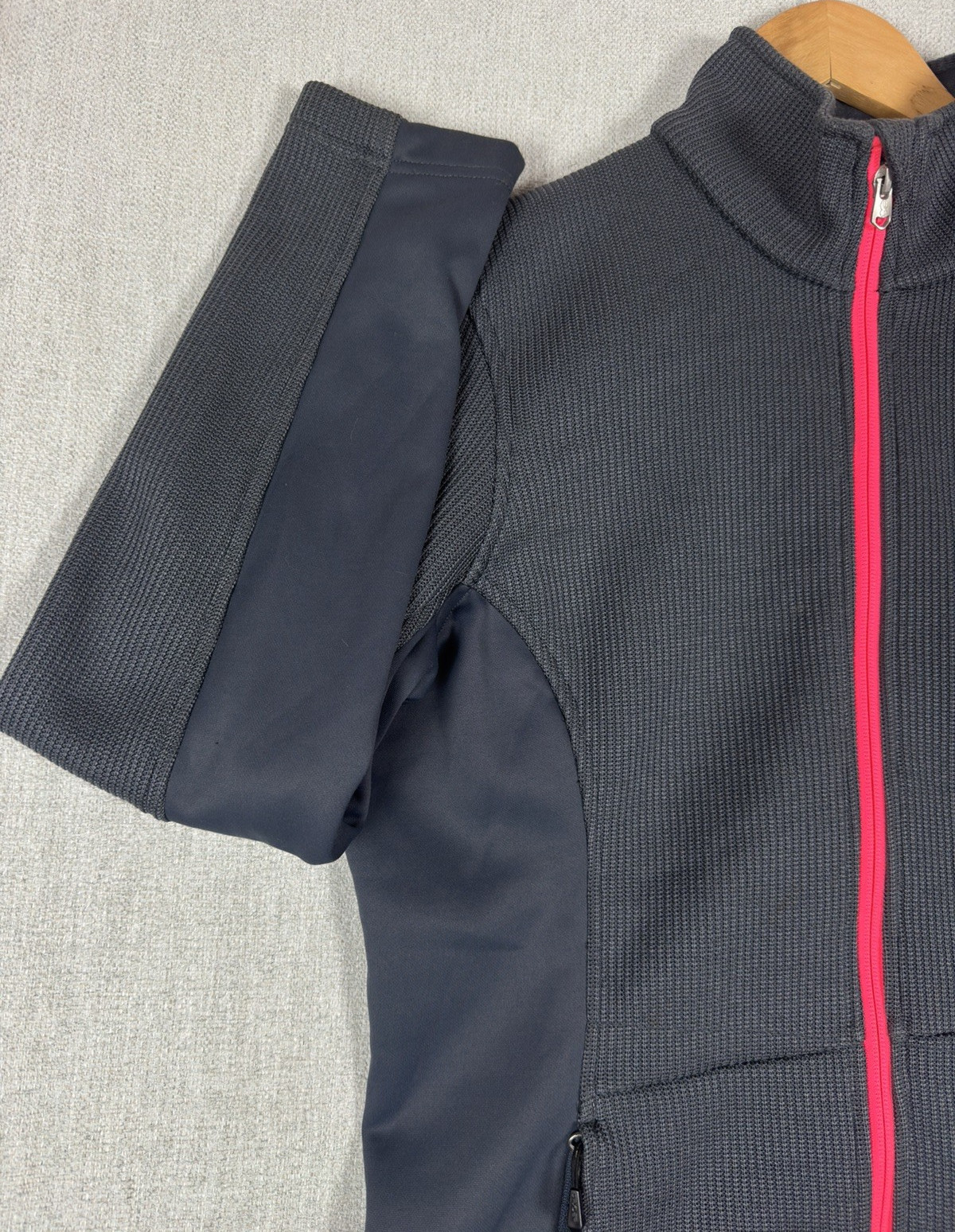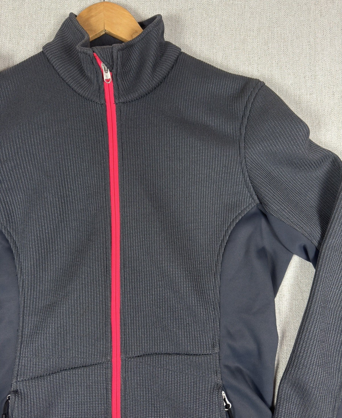 как выглядит Spyder Core Sweater Womens L Full Zip Jacket Grey Pink Ski Mid Layer Knit Fleece фото