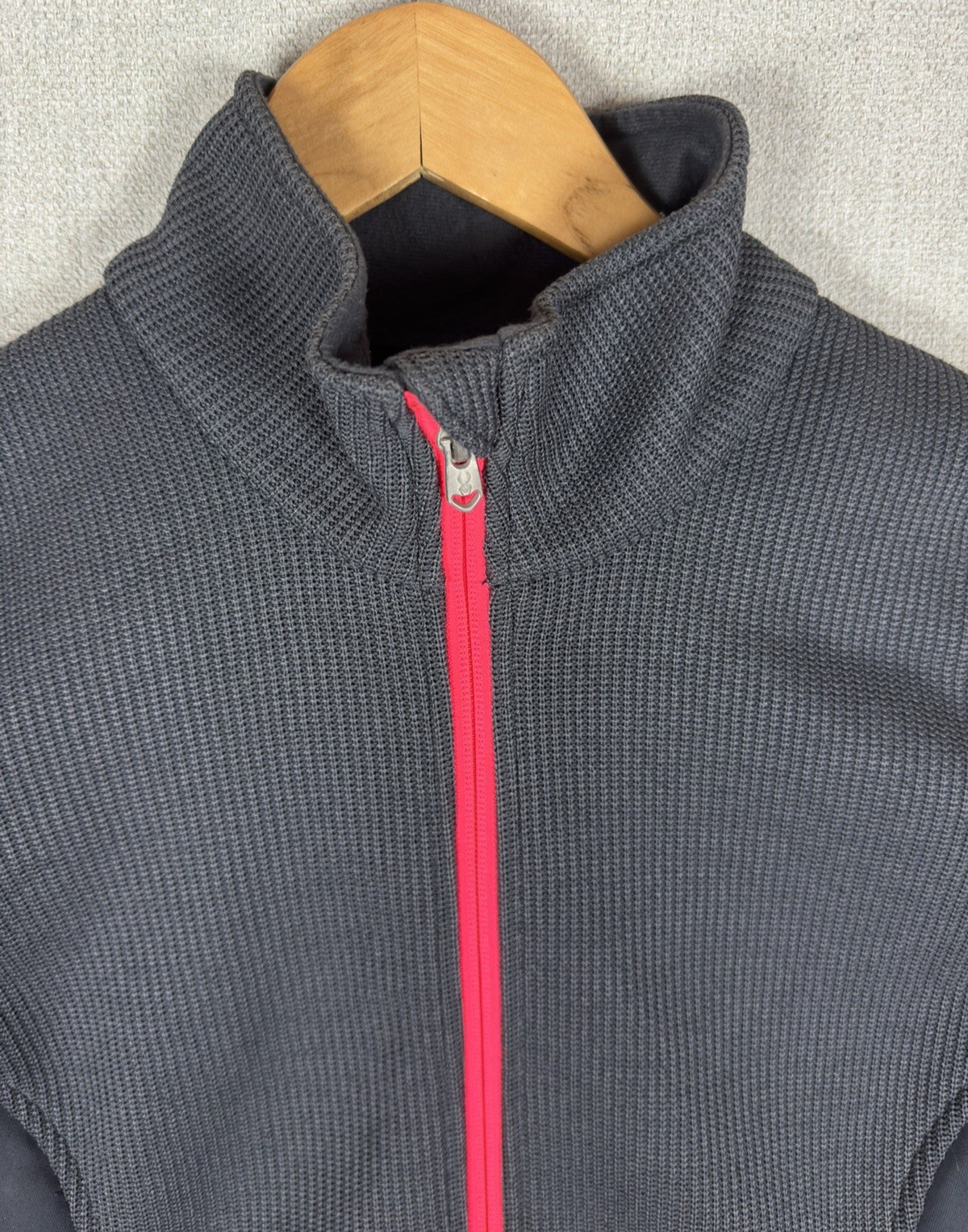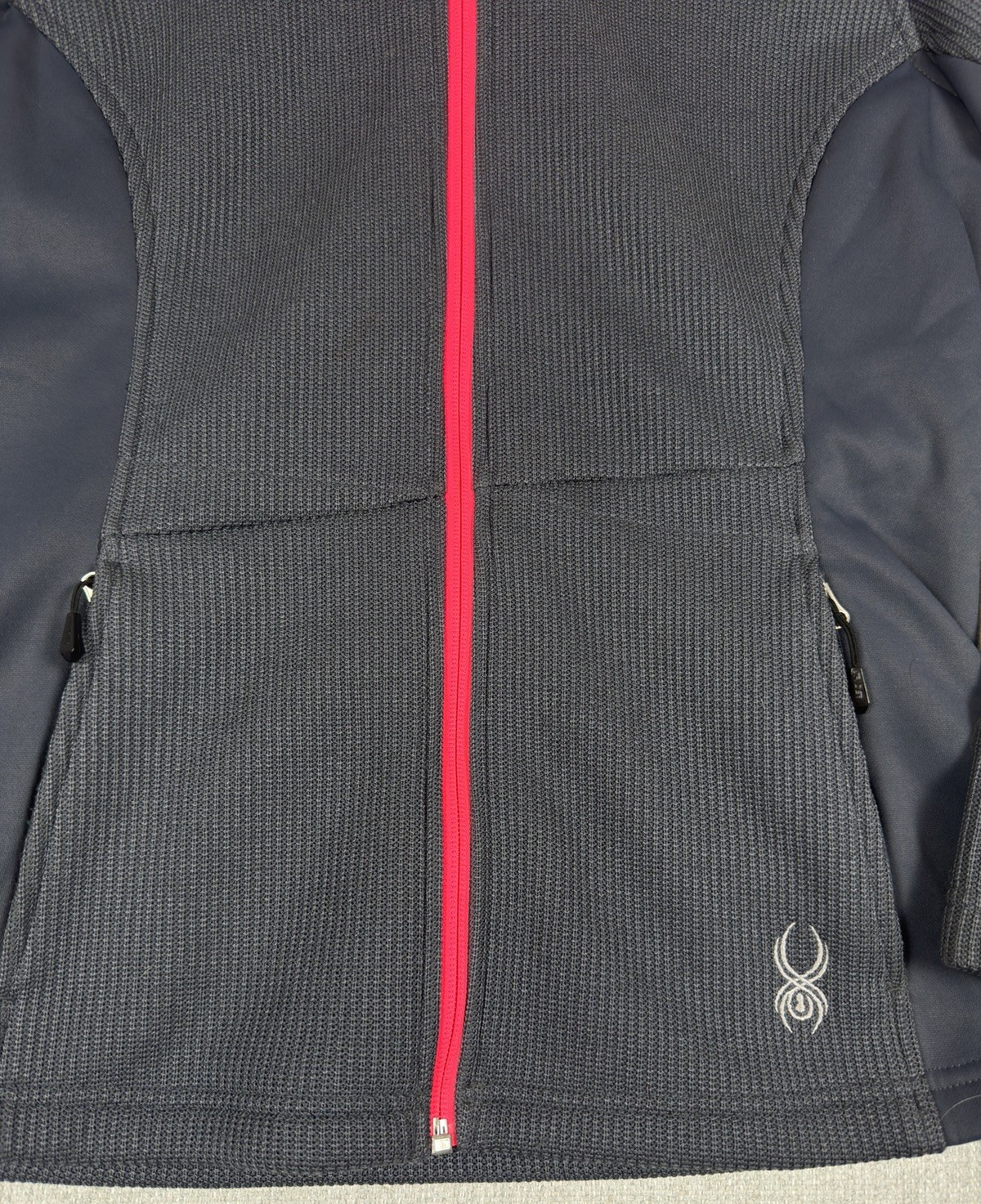 Spyder Core Sweater Womens L Full Zip Jacket Grey Pink Ski Mid Layer Knit Fleece