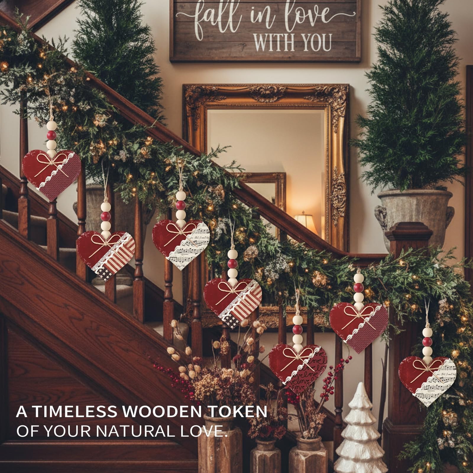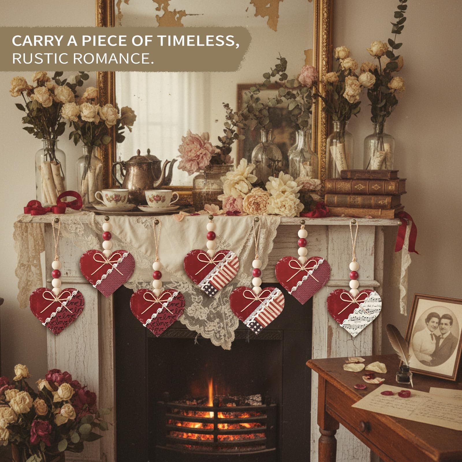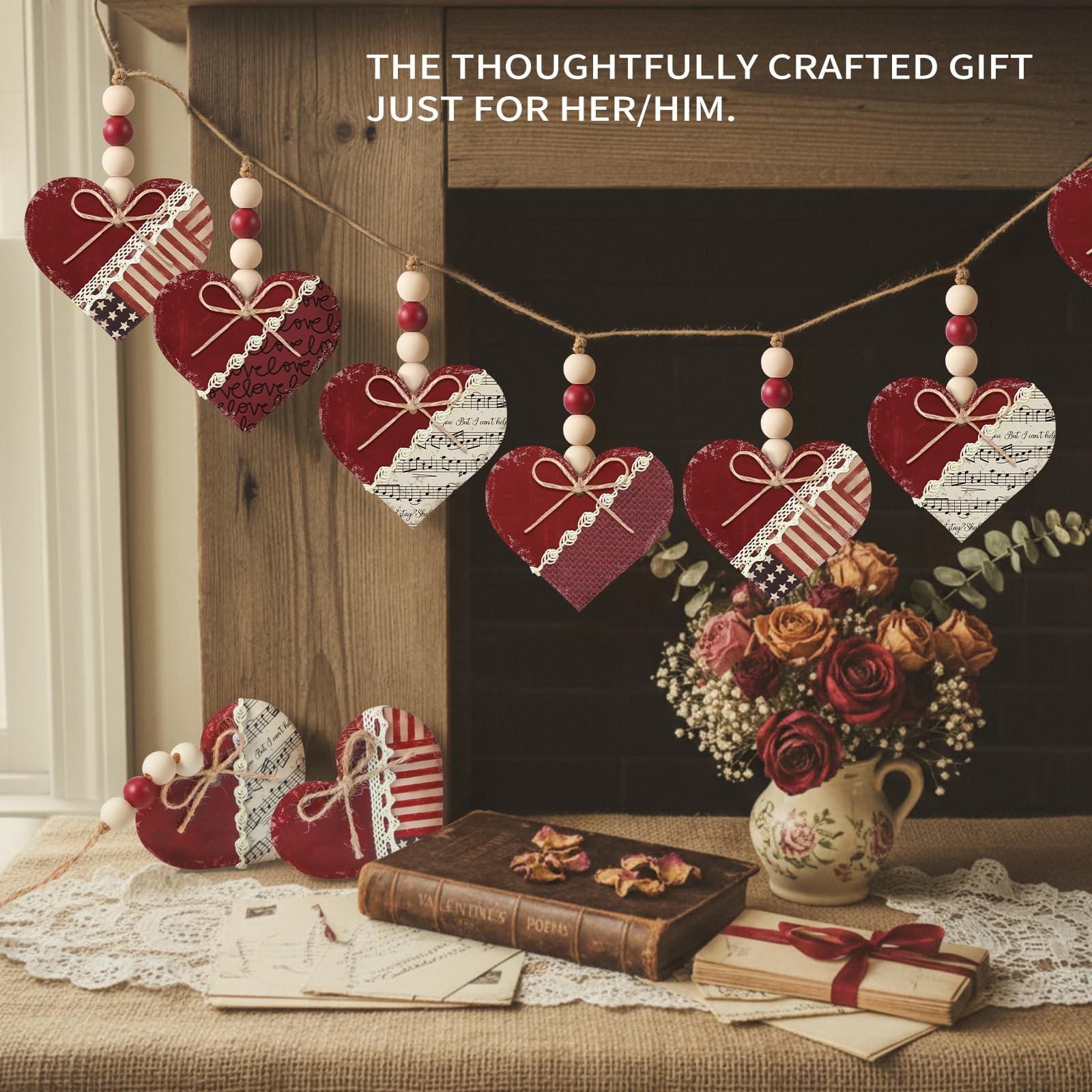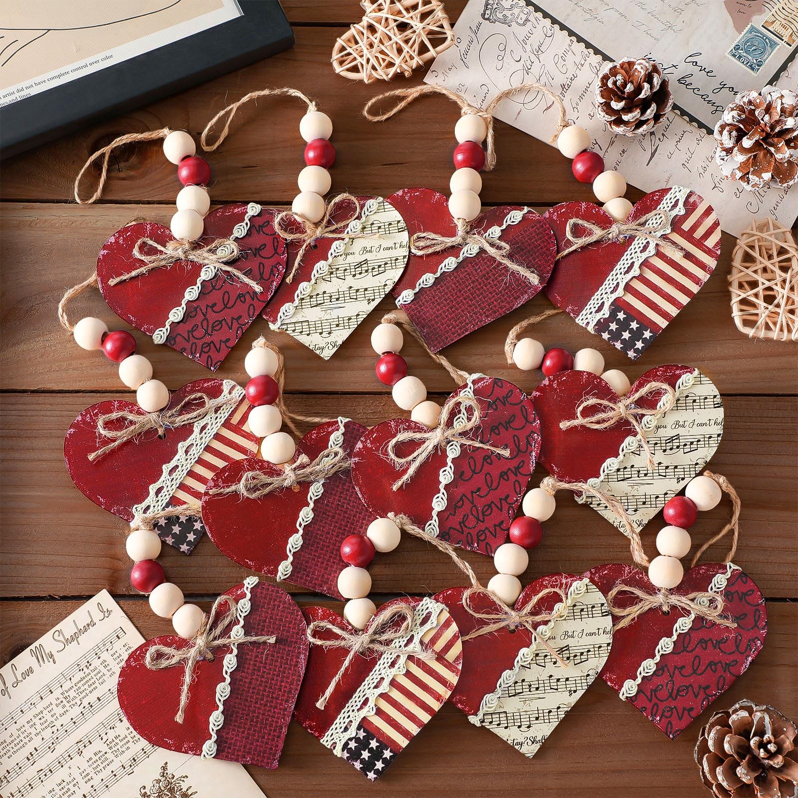 Included Components: 12 X Vintage Red Heart Hanging Ornaments