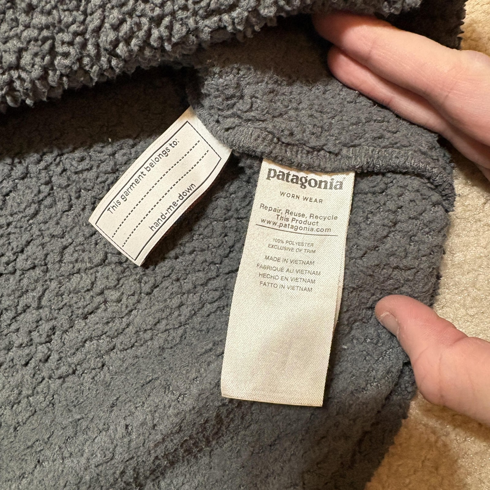 Patagonia Sherpa Fleece Jacket Youth Medium 10 Gray 1/4 Zip Worn Wear Deep Pile