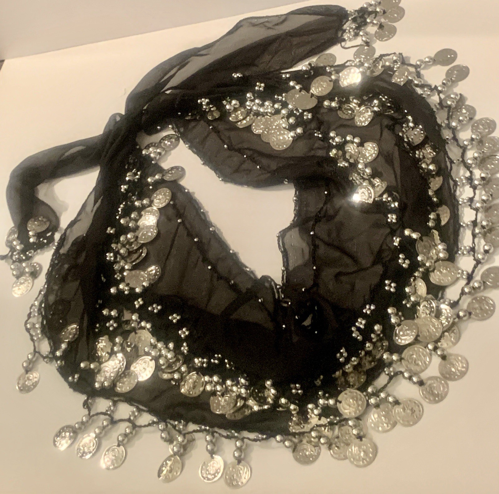 Black Chiffon Coin Embellished Belly Dance Hip Scarf