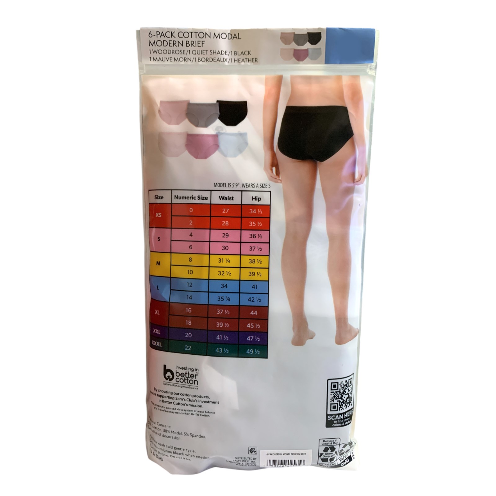 как выглядит Members Mark Womens 6-Pack Cotton Luxe Modern Brief фото