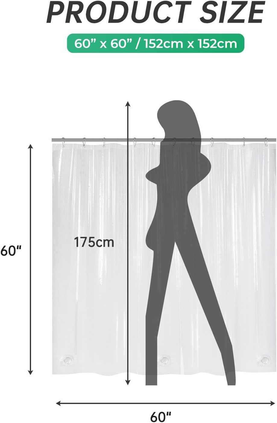 Small Stall Shower Curtain Clear 60x60 Inches Plastic RV Shower Curtain Camper