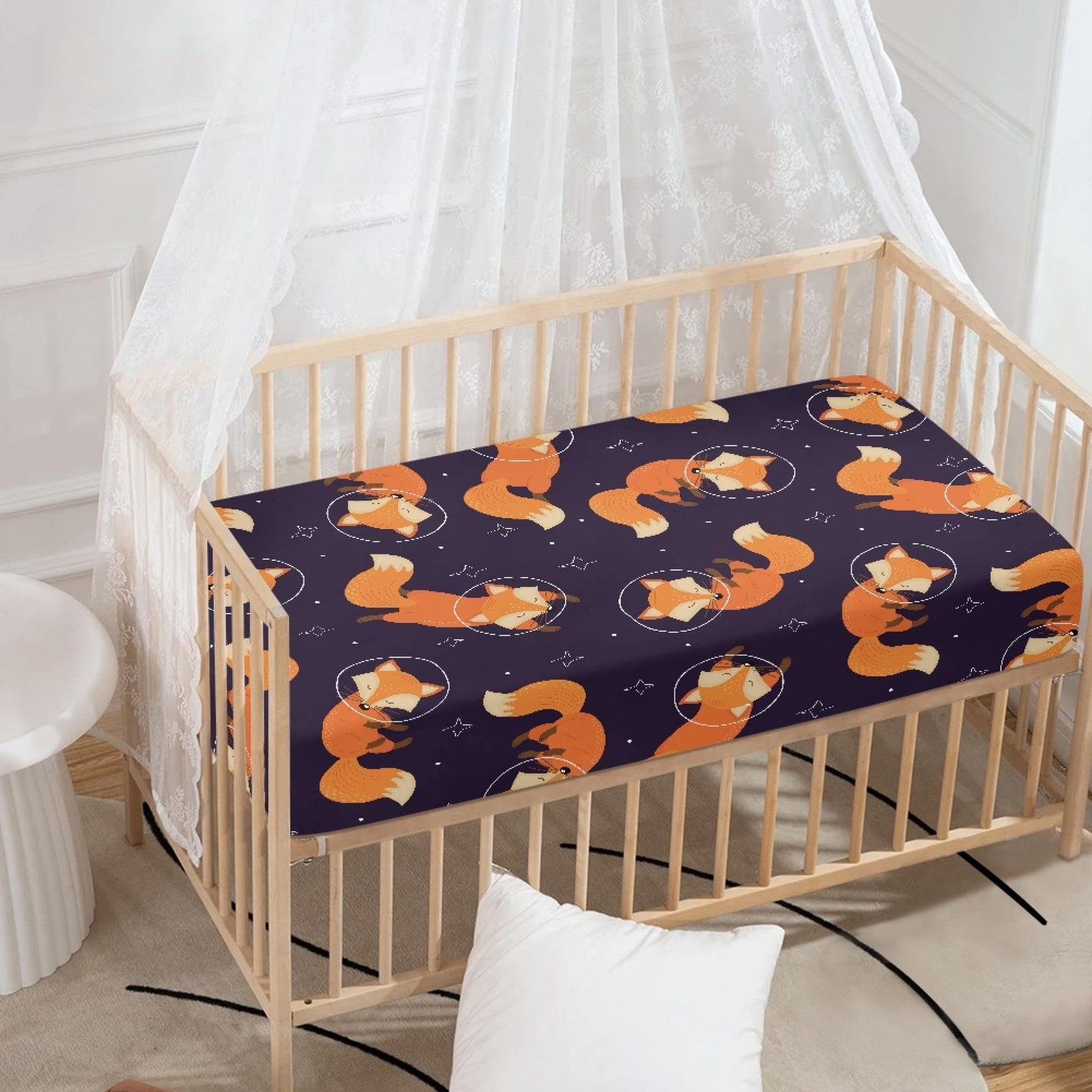 как выглядит Red Fox Animals Fitted Crib Sleeping Fox Baby Crib Fit Standard Crib and Matt... фото