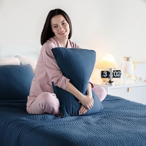 Quilt Set 104x90 Soft Washed 3-Layer Lightweight King Dress Dark Blue