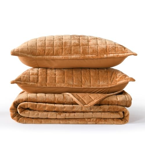 Velvet Quilt Queen, Soft Luxury Plaid Bedding Set, Lightweight Bedspread