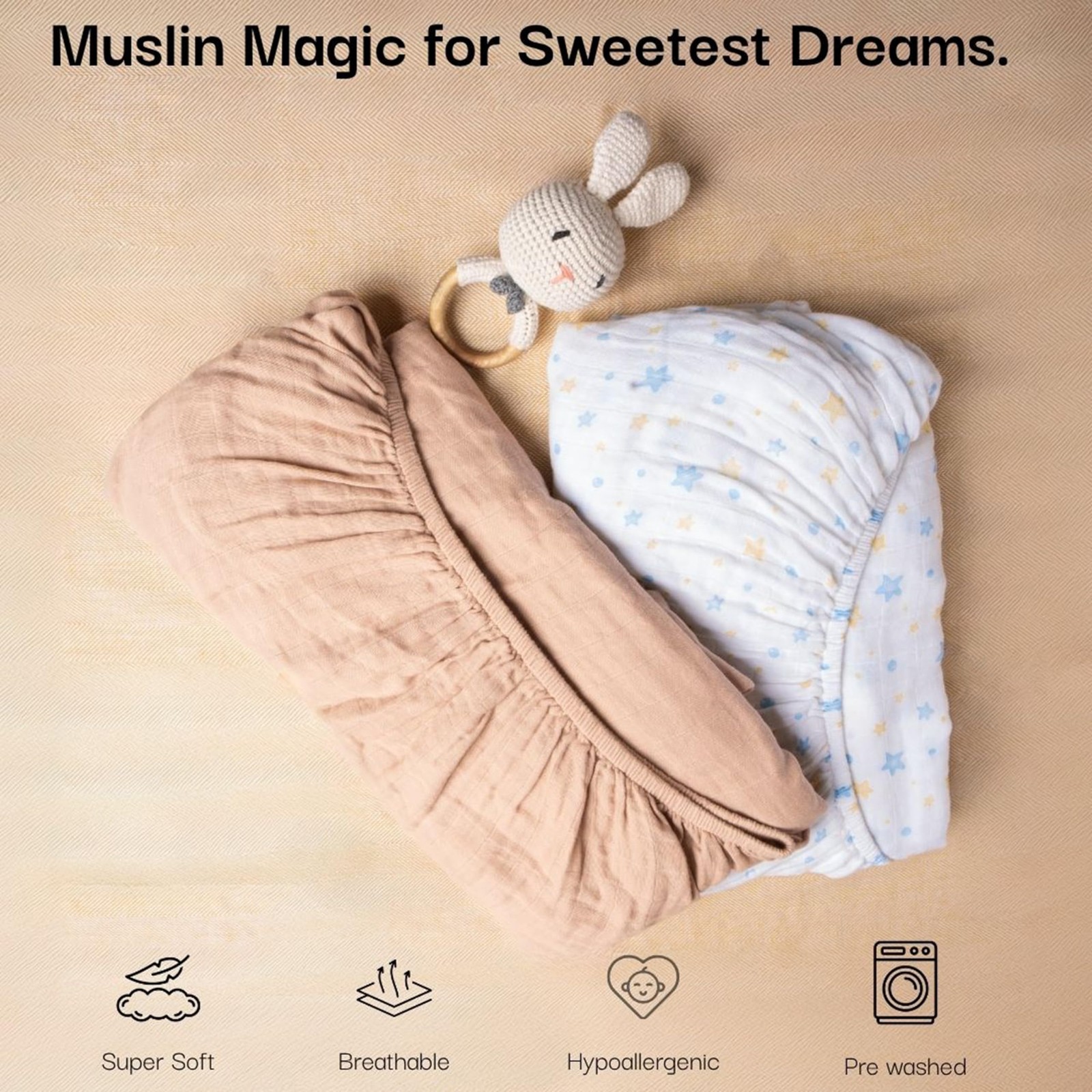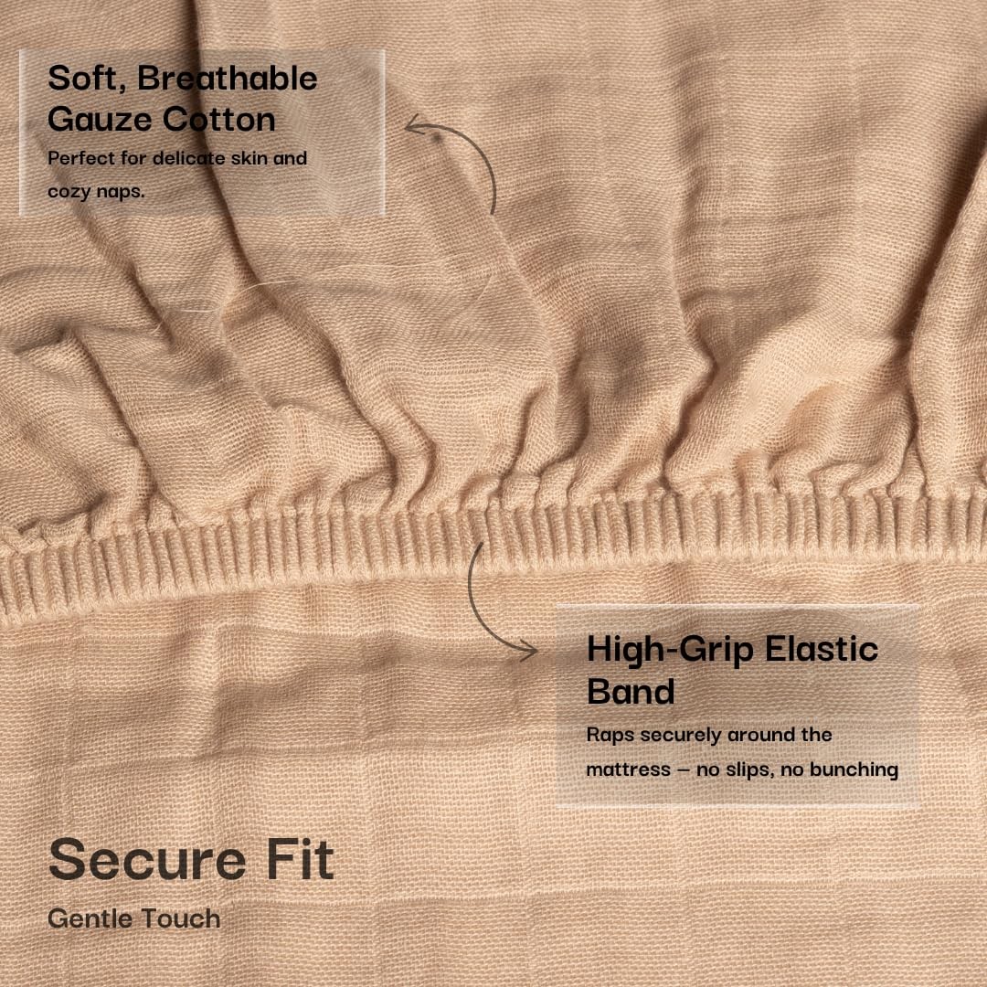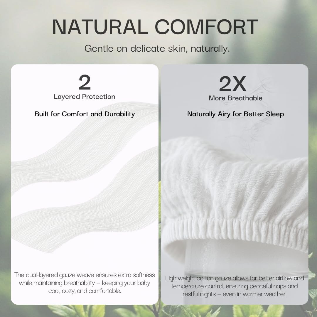 100 Organic Cotton Muslin Standard Fitted Crib , 52x28, 2 Pack Soft Breath...