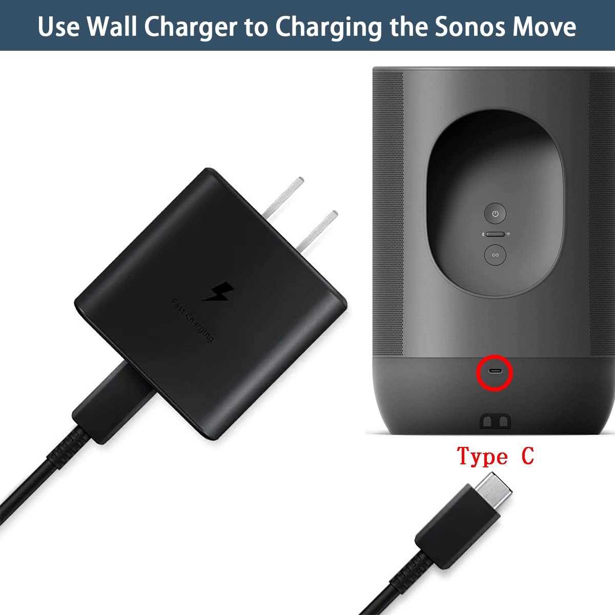 45W Charger for Sonos Move Bluetooth Speaker Compatible with Sonos Move USB T...