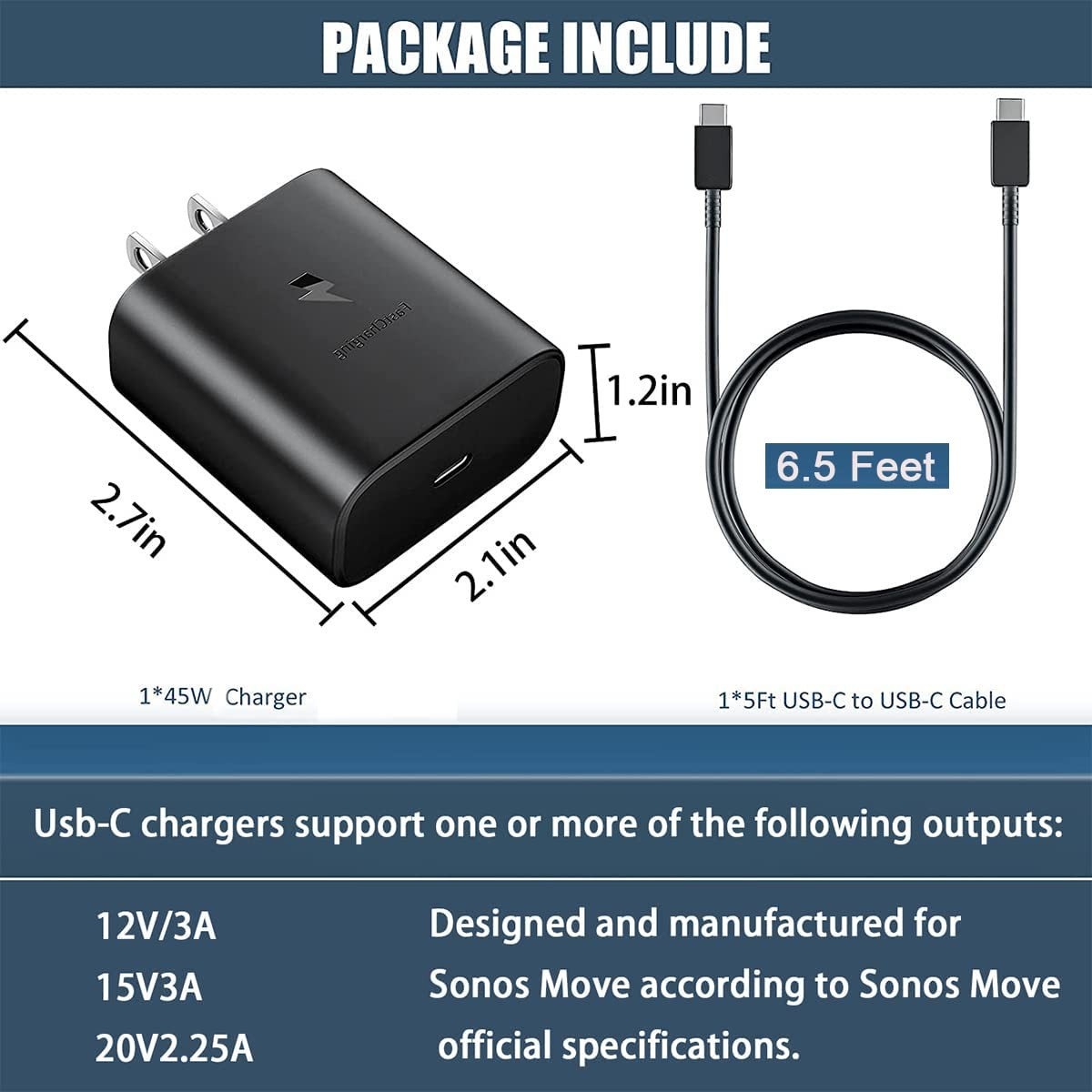 как выглядит 45W Charger for Sonos Move Bluetooth Speaker Compatible with Sonos Move USB T... фото