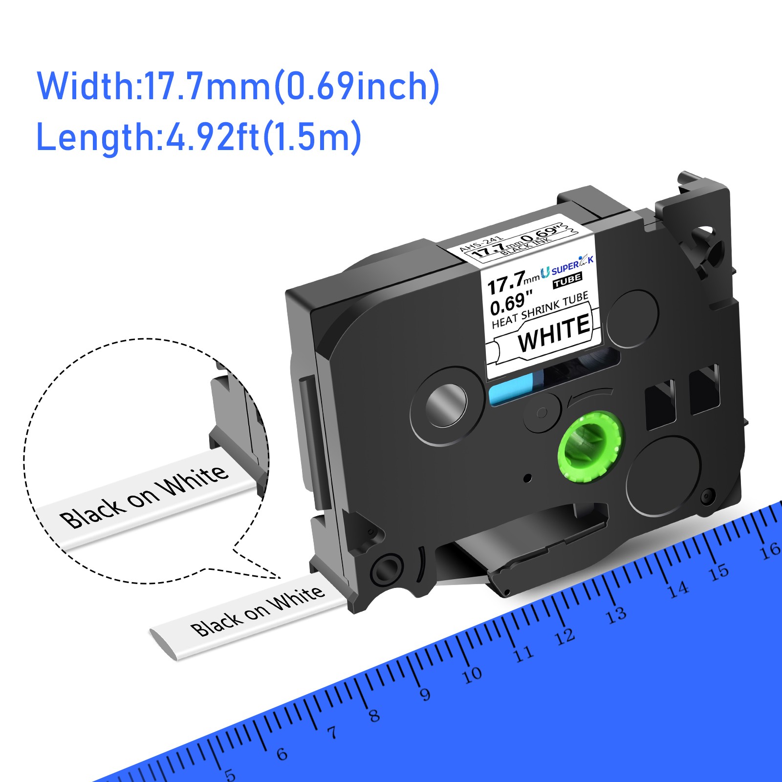 17.7mm Heat Shrink Tube 2:1 White Label Tape For Brother P-Touch HSe-241 x4PCS