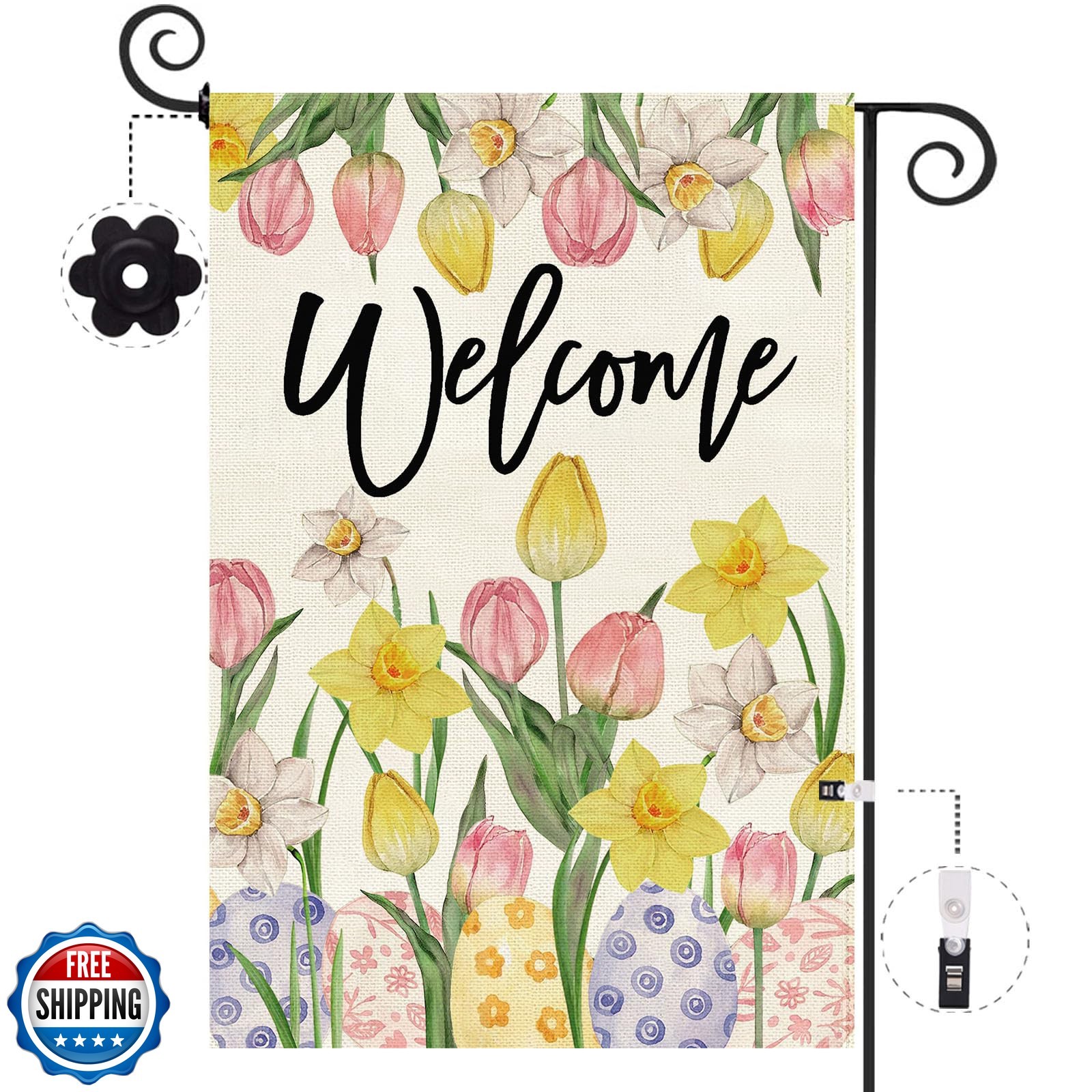 Baccessor Welcome Easter Garden Flag 12.5 x 18 Inch, Double Sided Burlap Tuli...