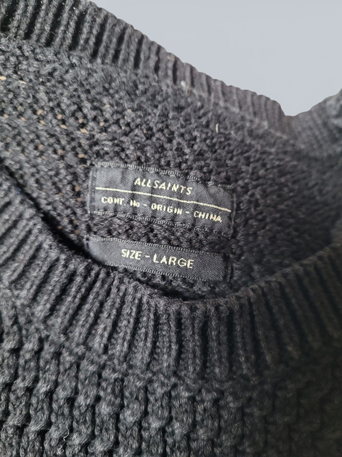 как выглядит All Saints Etrick Crew Knit Jumper Men s Large Black Cotton Blend Sweater фото