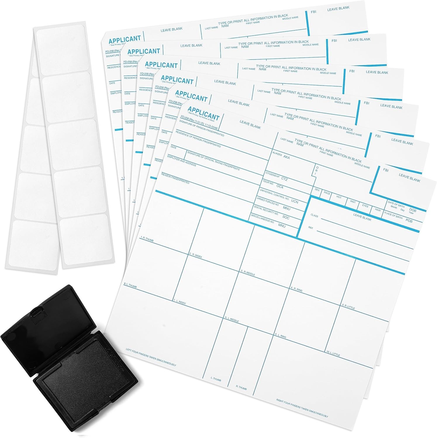 Особенности: High Capacity, Made in USA, FD-258 Fingerprint Card Kit, 6 FD-258 Fingerprint Cards, 1 Practice Card, Reusable Inkless Ink Pad, Correction Tabs, Instructions