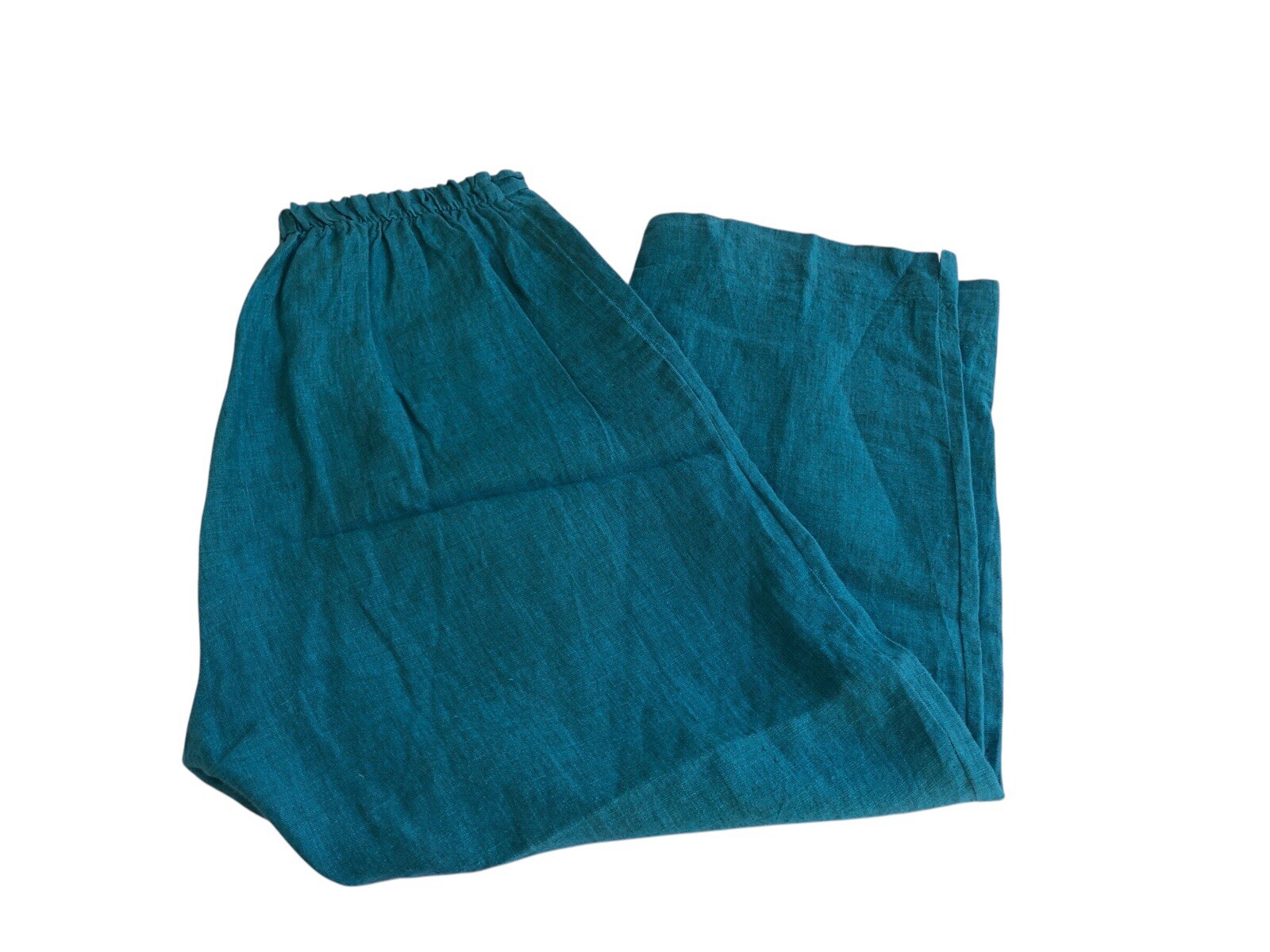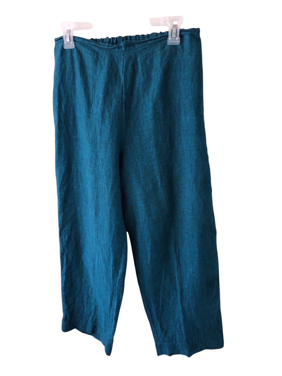 BRYN WALKER M Turquoise Linen Wide Leg Pull on Ankle Pants Medium