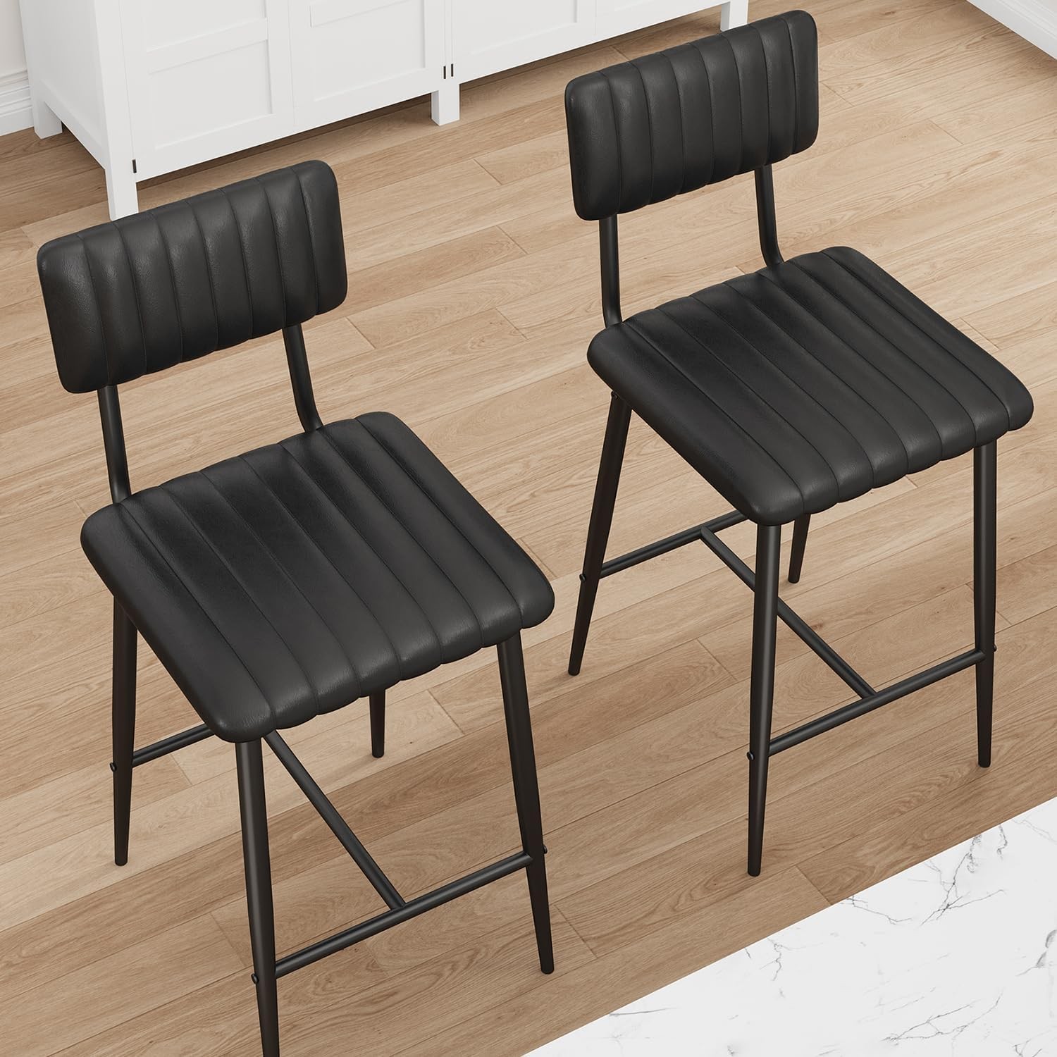 Set of 2 Bar Stools Chairs Tall W Thick Cushion Thickened Metal Legs PU Leather