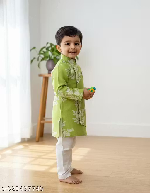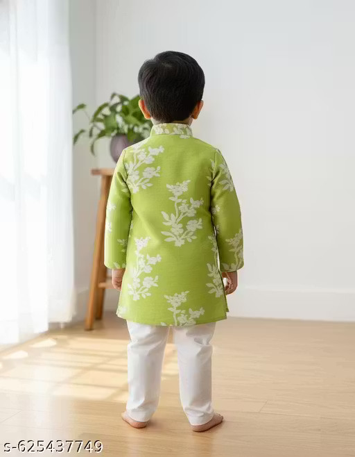 TRADITIONAL KIDS ETHNIC Boys Printed Cotton Silk Kurta Pyjama Set for festival