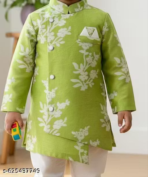 как выглядит TRADITIONAL KIDS ETHNIC Boys Printed Cotton Silk Kurta Pyjama Set for festival фото