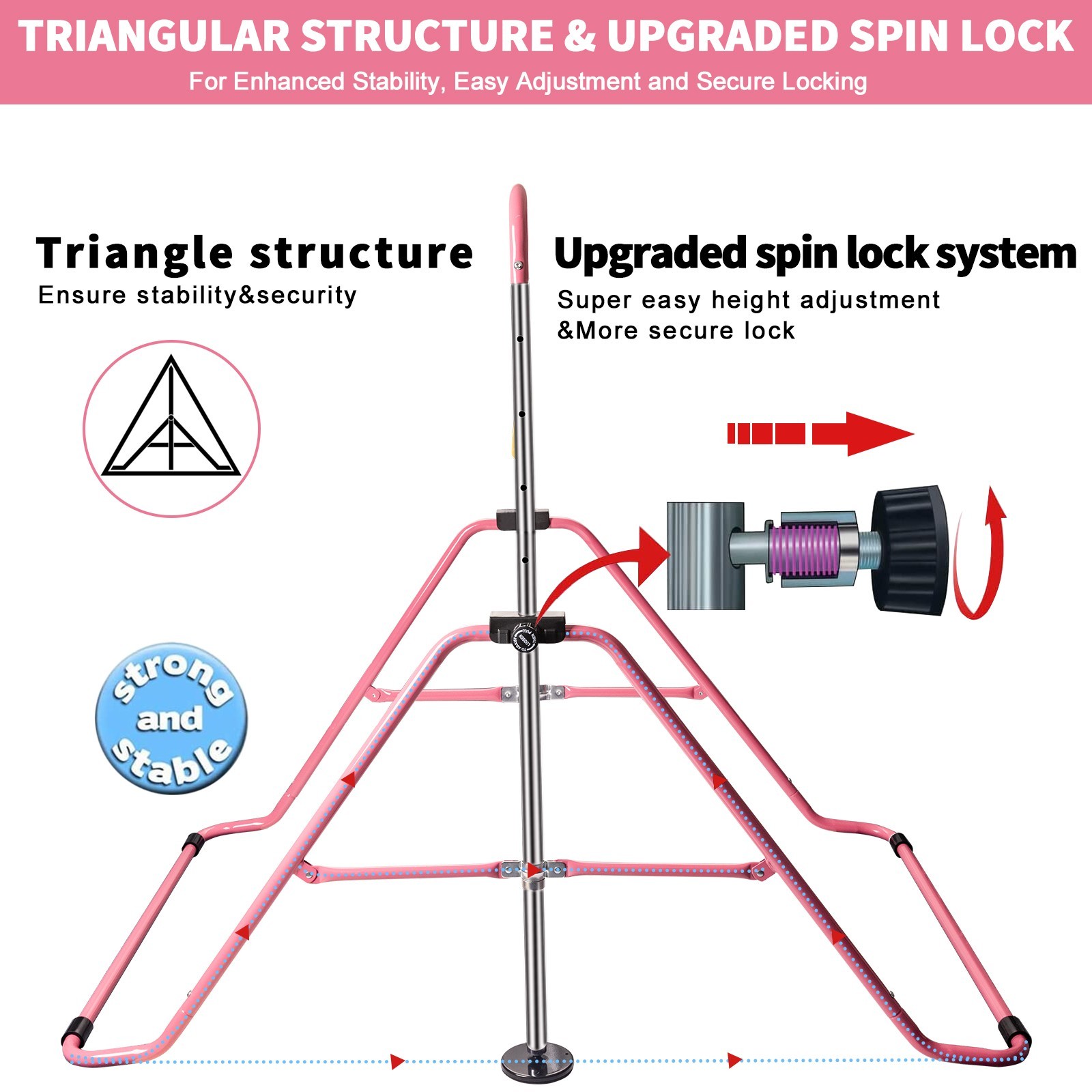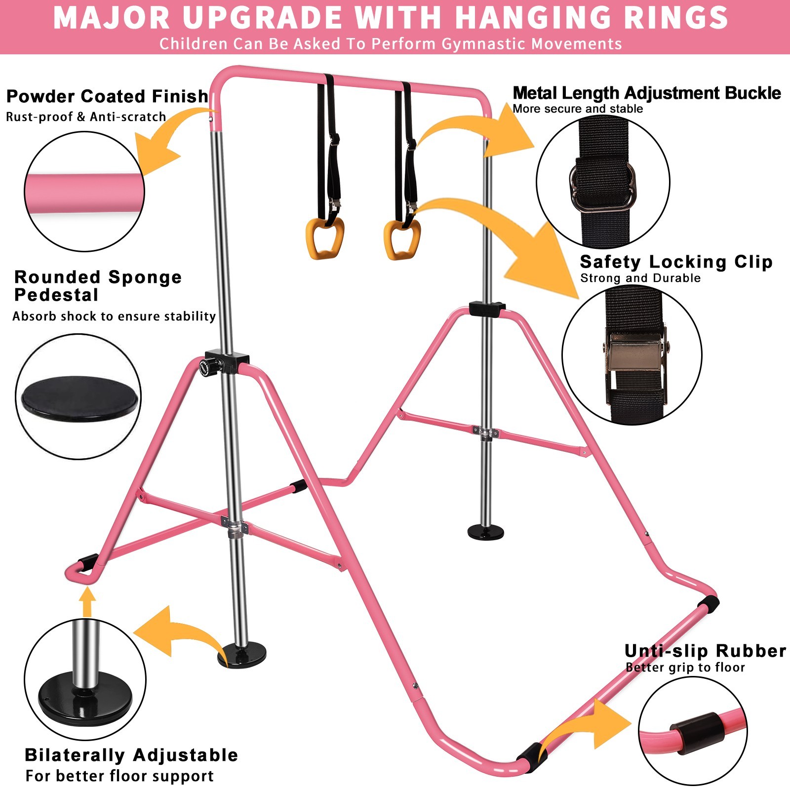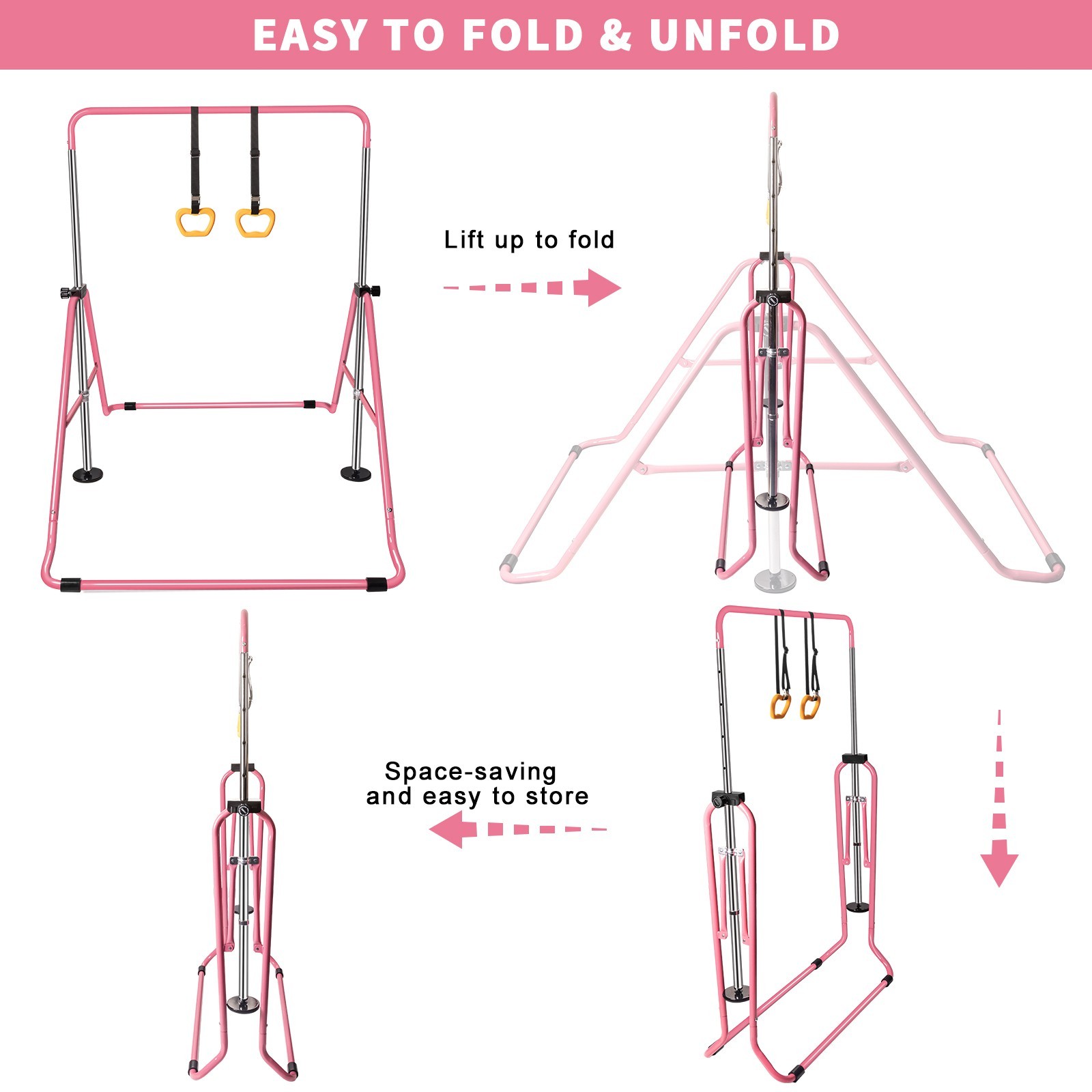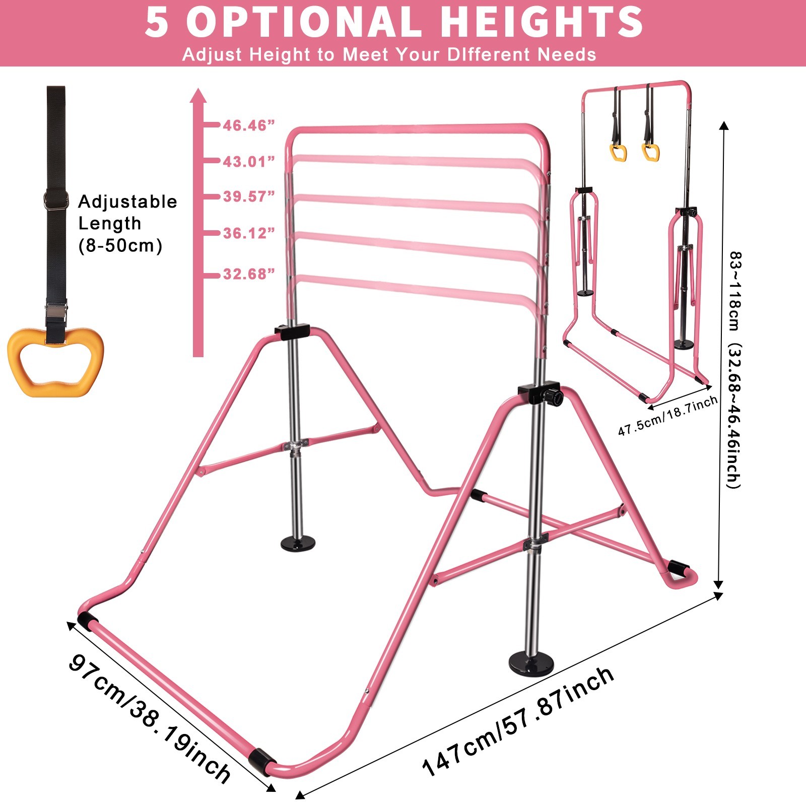 Gymnastics Bar Gymnastic Equipment for Home Adjustable Height Pink