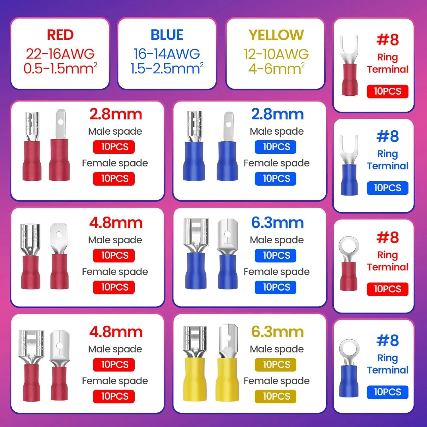 160PCS Crimp Connector Kit, Wire Crimp Connectors Kit Male and Female Spade Conn