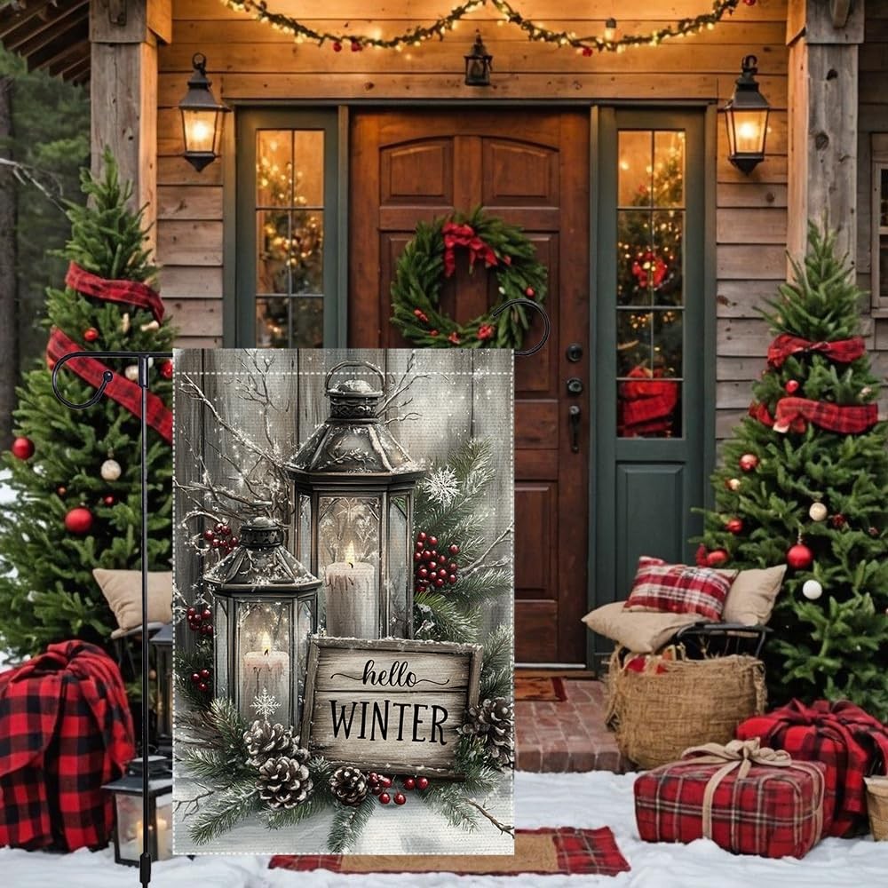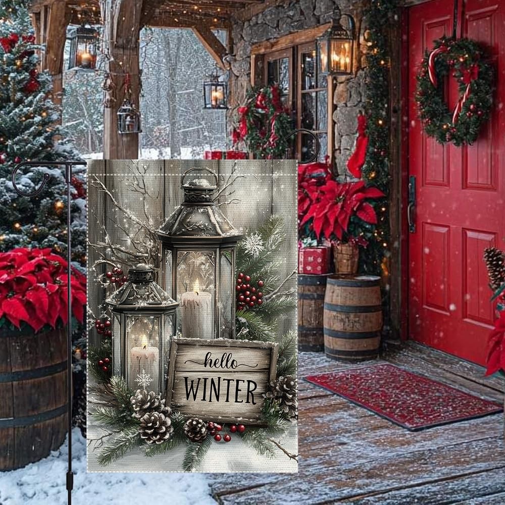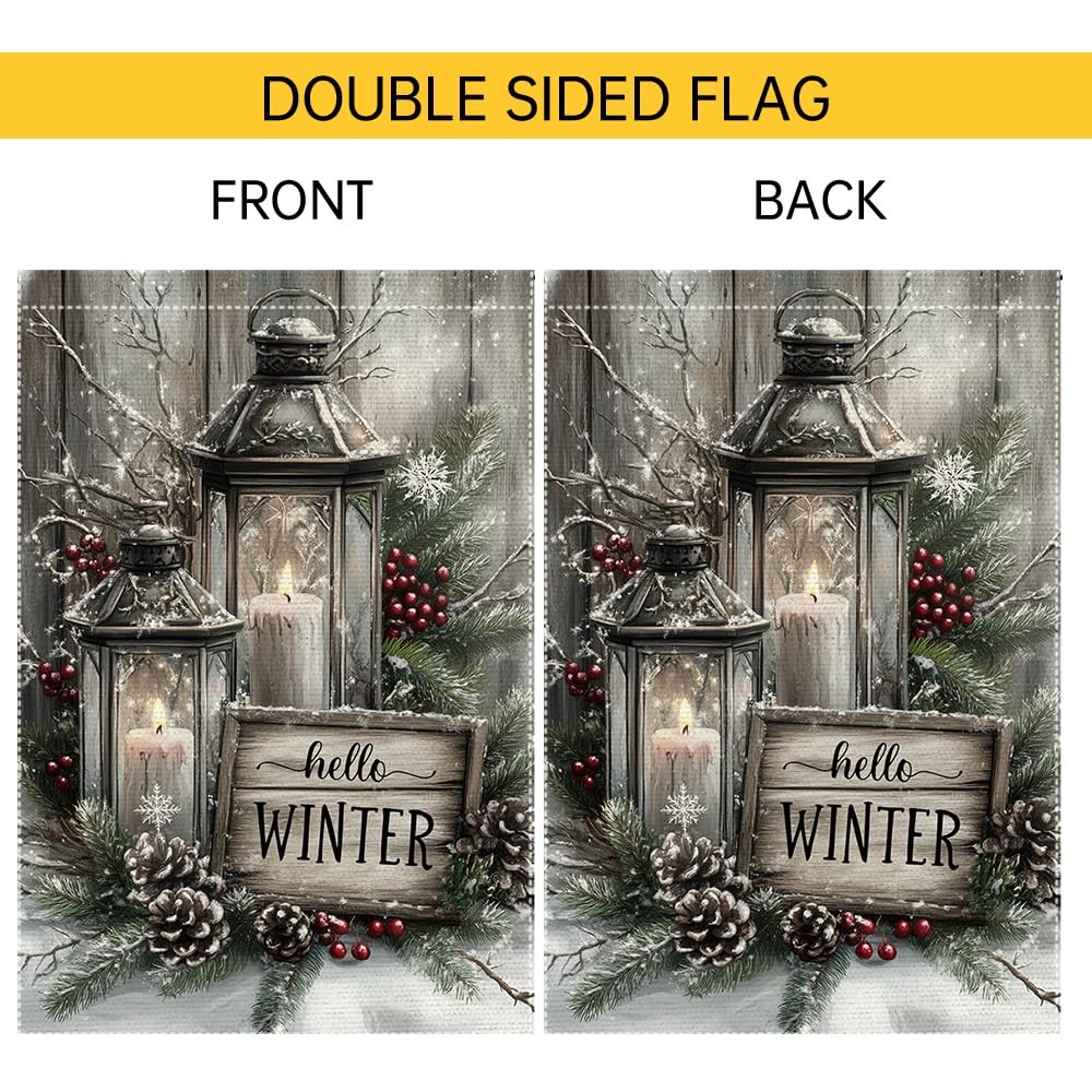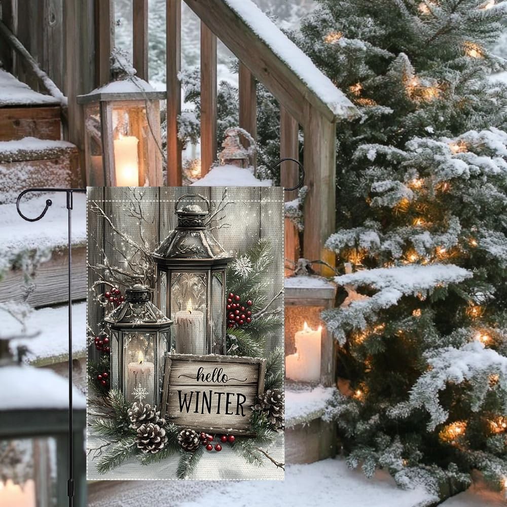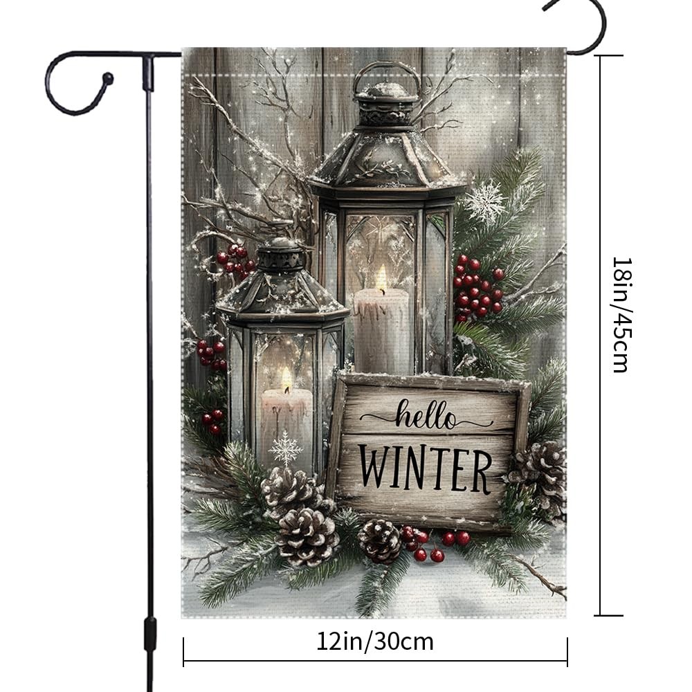Winter Garden Flag 12x18 Inch Double Sided Rustic Burlap Hello Winter Welcome...