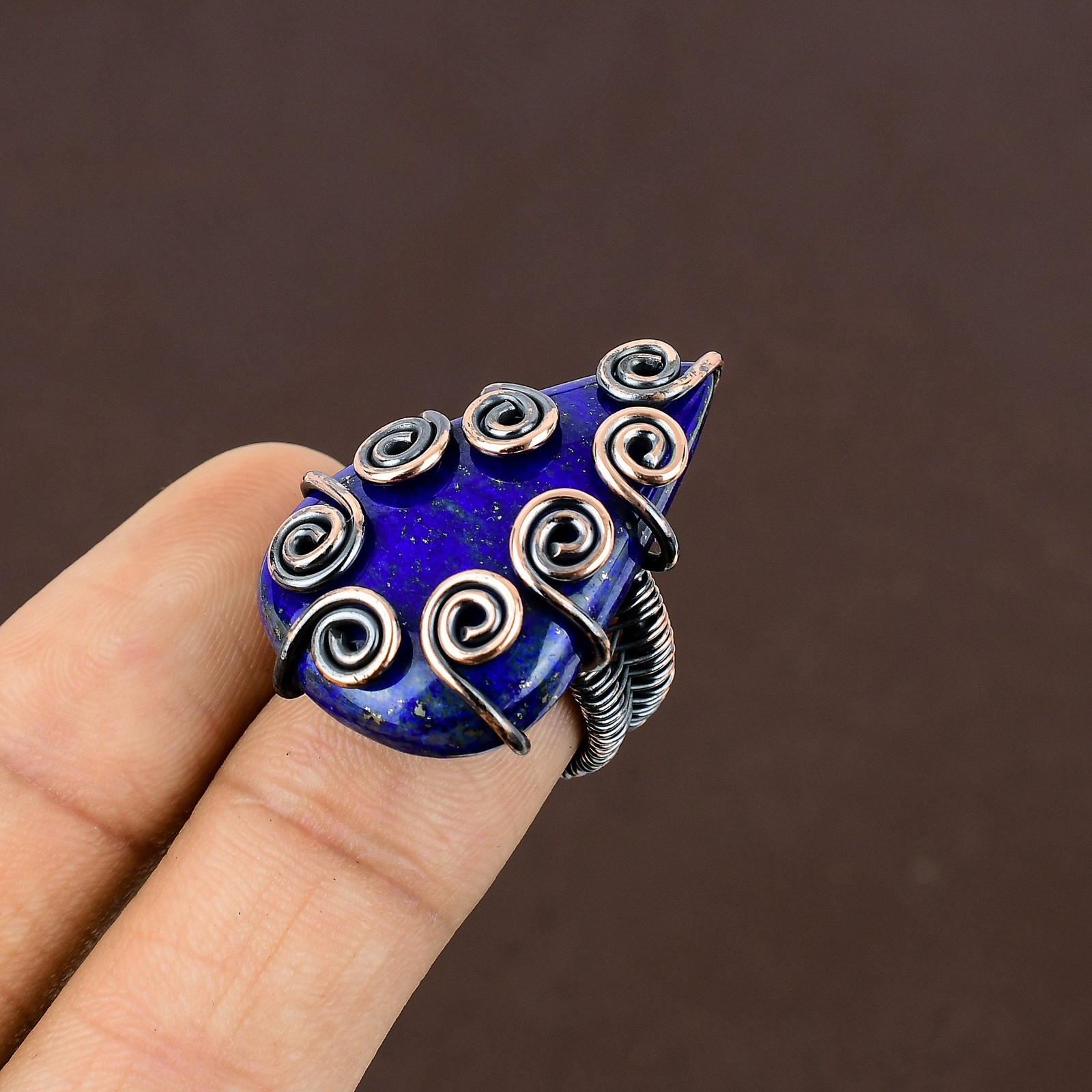 как выглядит Natural Lapis Lazuli Gemstone Handmade Copper Wire Wrap Ring Size 5.5 K286 фото