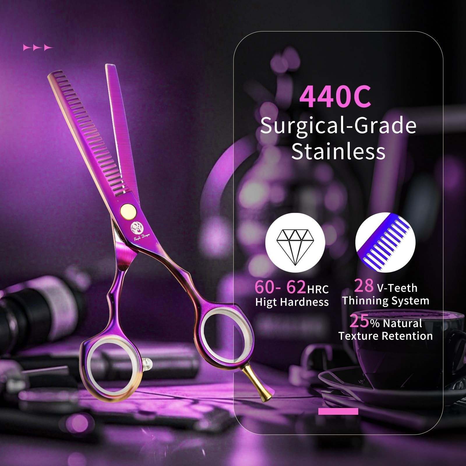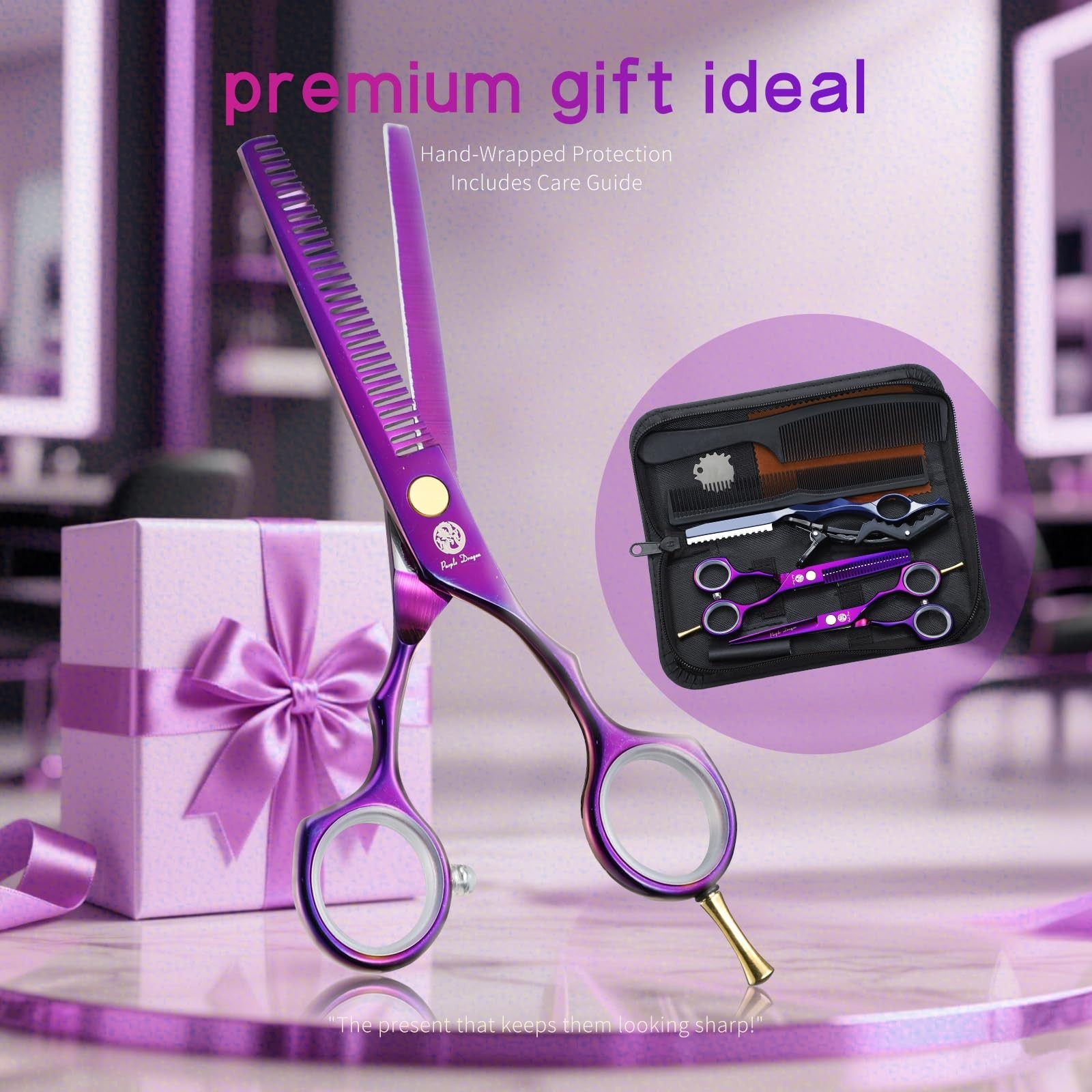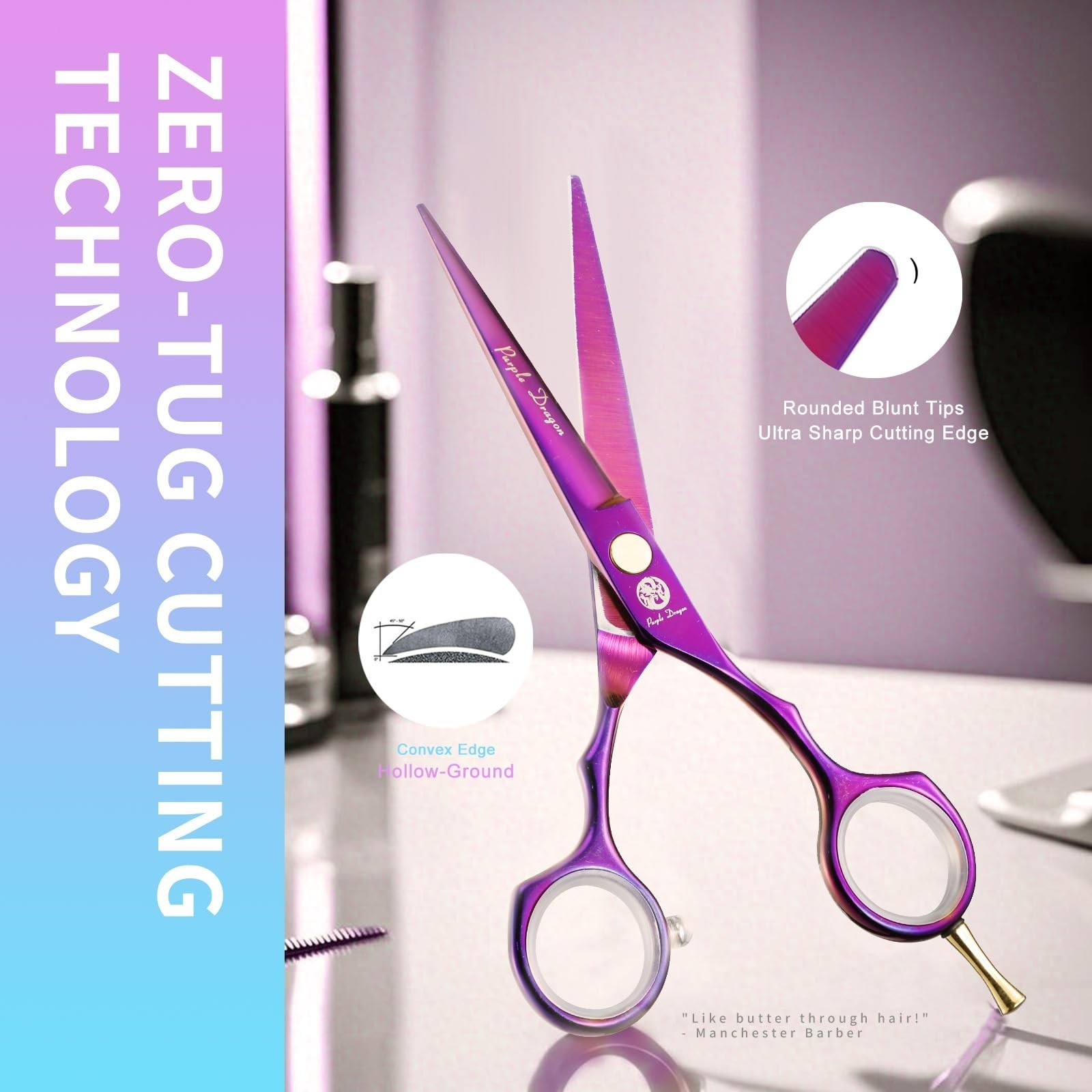 Purple Dragon 5.5 inch Hair Cutting Scissors Set with Razor, Leather Scissors...