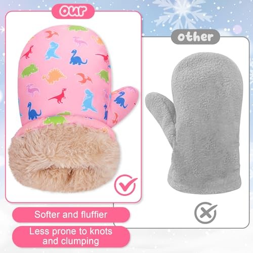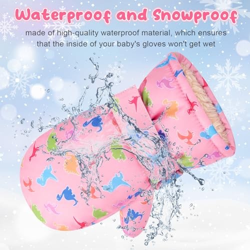 Waterproof Toddler Mittens, Kids Winter Warm Ski Snow Gloves 2-4 Years Pink