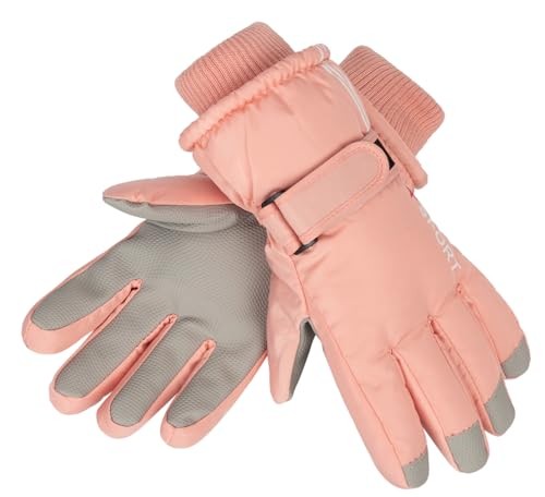 Kids Winter Ski Snow Gloves - Warm Waterproof Snowboard for 5-10 Years Pink10