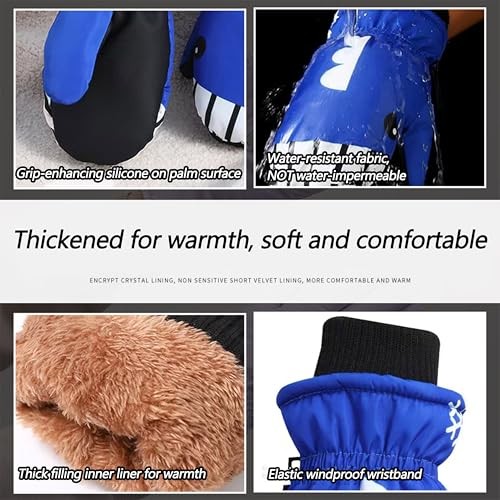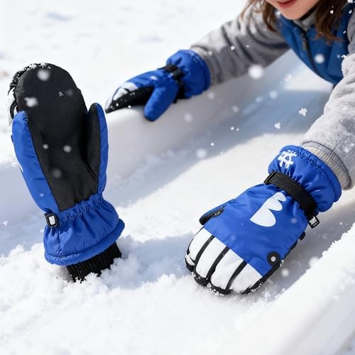 Kids Winter Warm Ski Gloves - Outdoor Mittens for Girls Boys 4-8 Years Blue