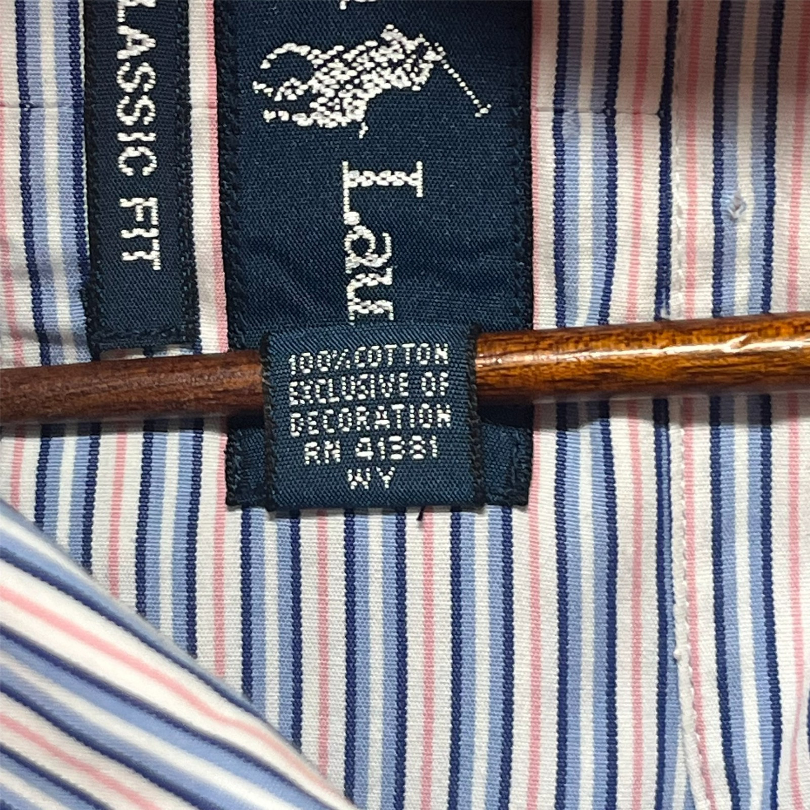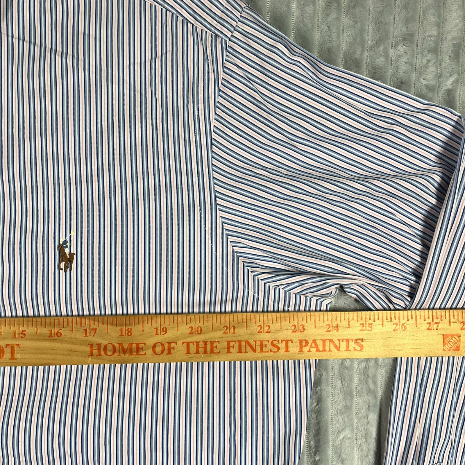 как выглядит Ralph Lauren Classic Fit Button Down Shirt Mens 16 34/35 Blue Pink Striped Prep фото