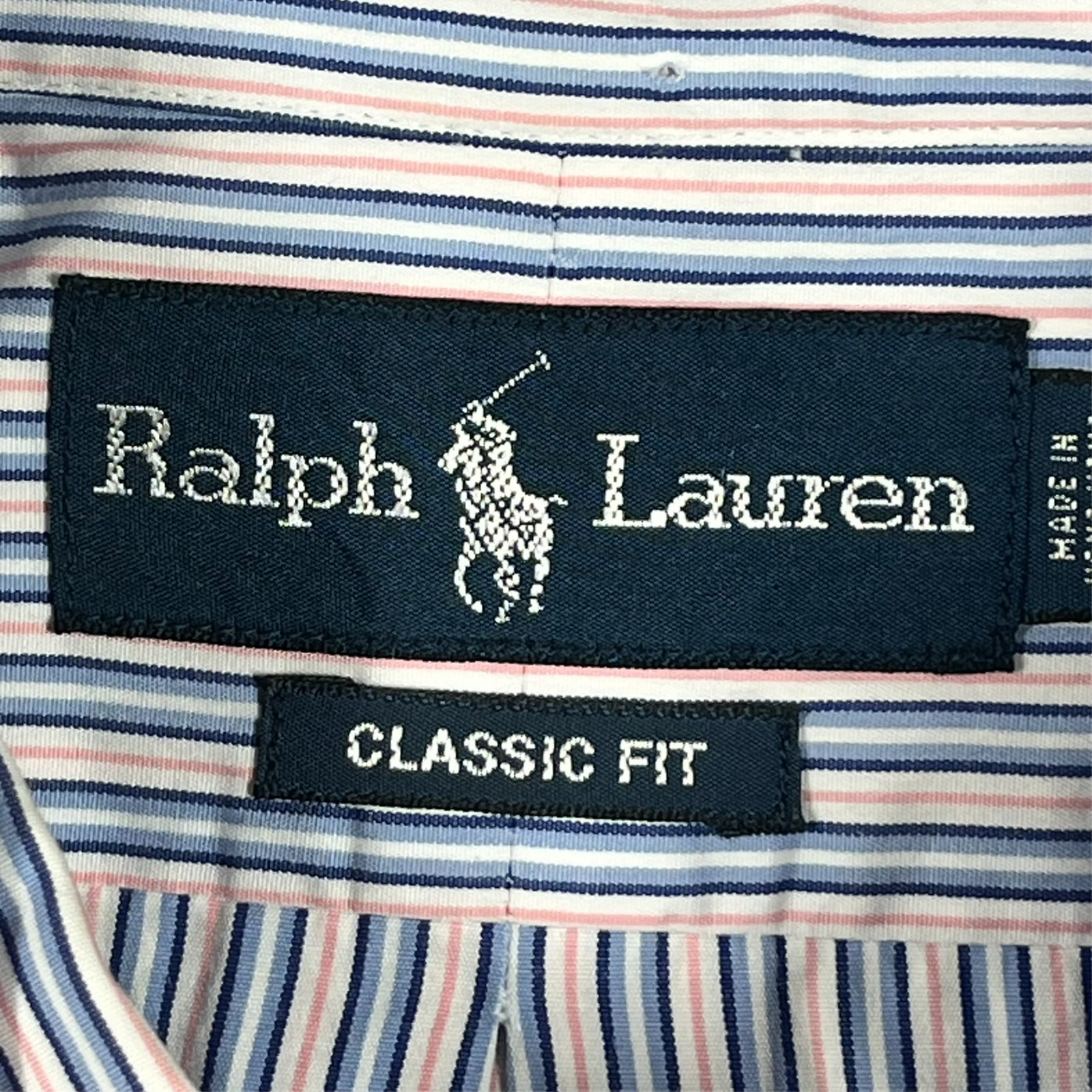 Ralph Lauren Classic Fit Button Down Shirt Men's 16 34/35 Blue Pink Striped Prep