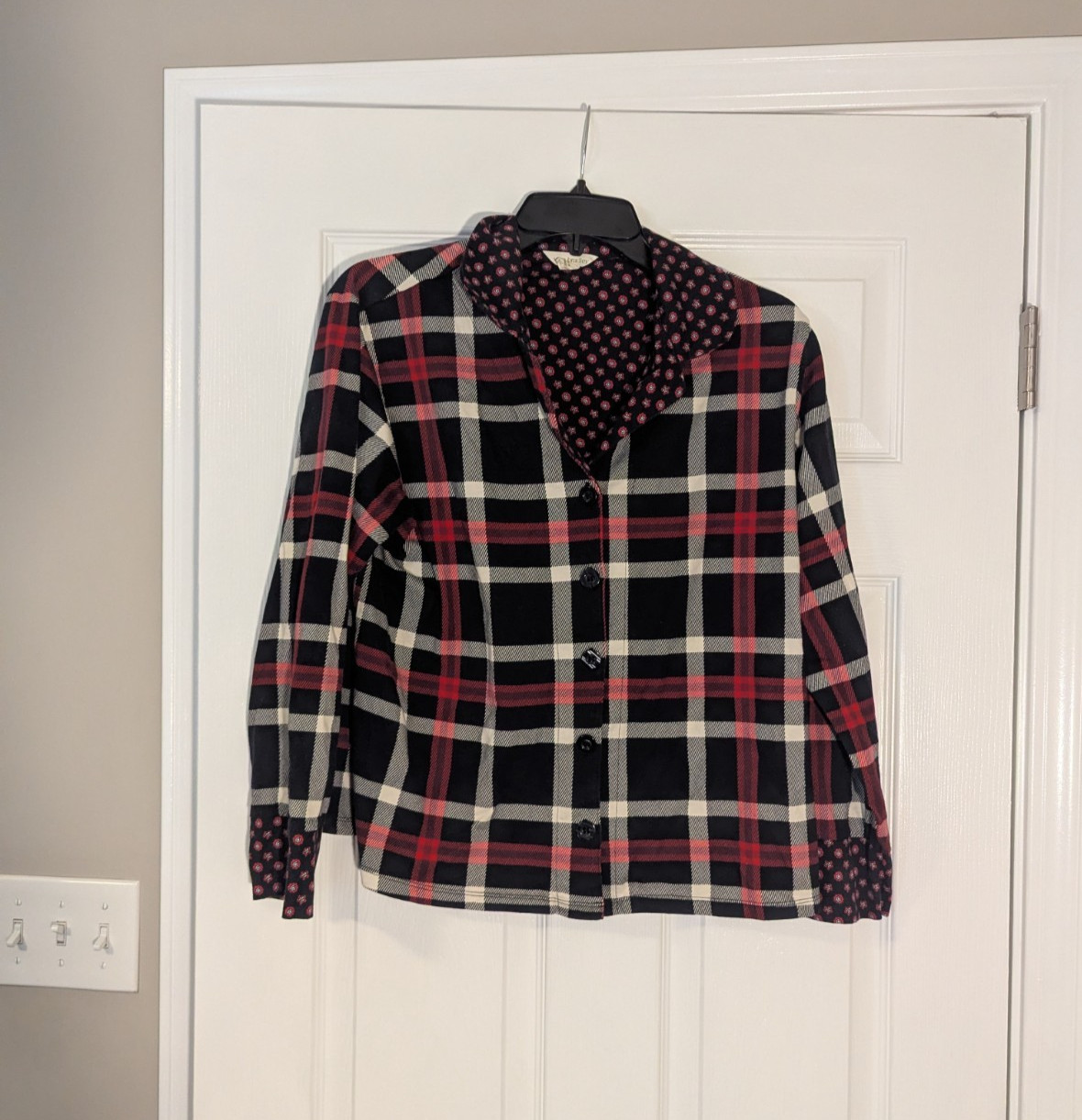 как выглядит Vera Bradley Womens Notch Collar PJ Set Plaid NEW Red Black Cotton фото