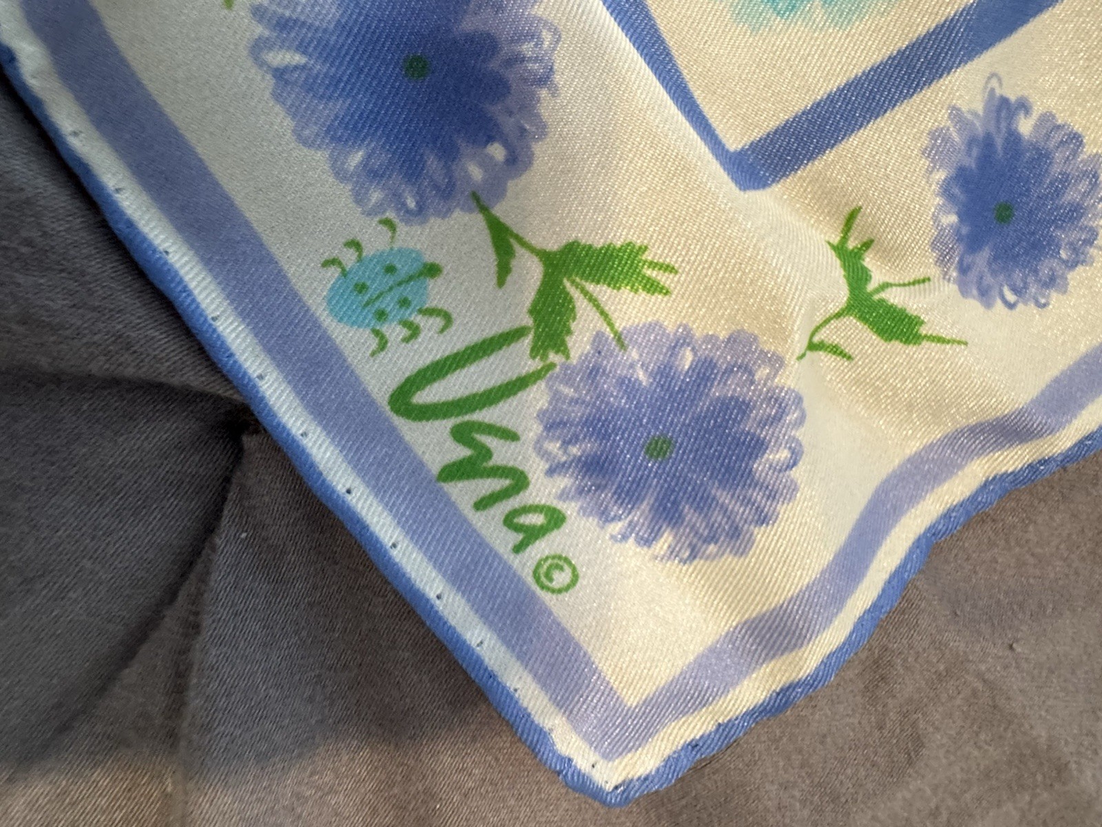 как выглядит Vintage 1950s Vera Neumann Blue And White Floral Scarf фото