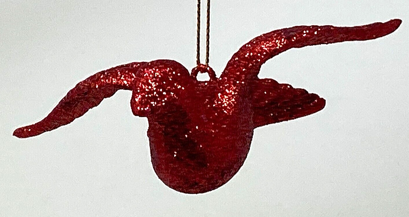 Christmas Glitter Dove Ornament Red Hanging Holiday Tree Decor Resin Sparkling