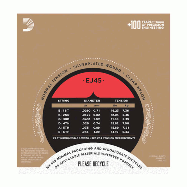 D'Addario EJ45 Pro-Arte Nylon Classical Guitar Strings Normal Tension Plain Ends