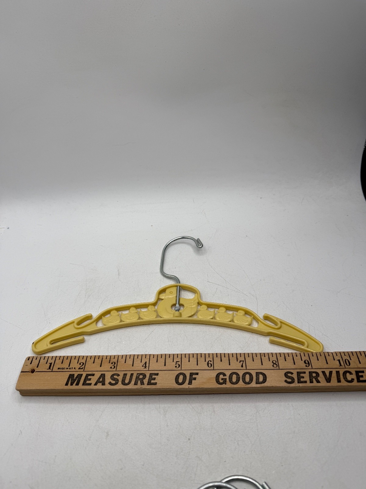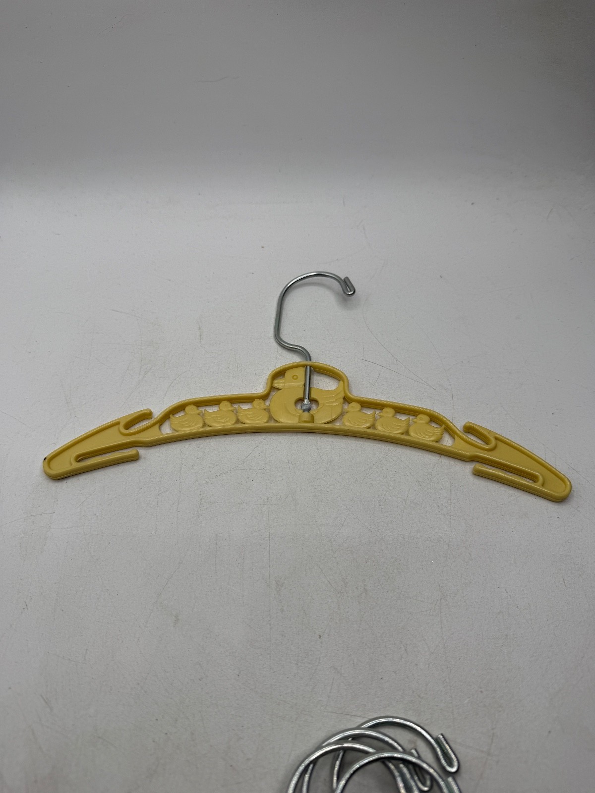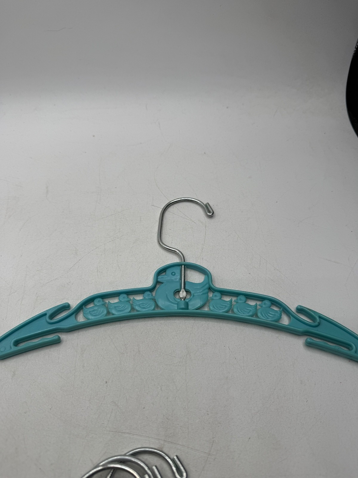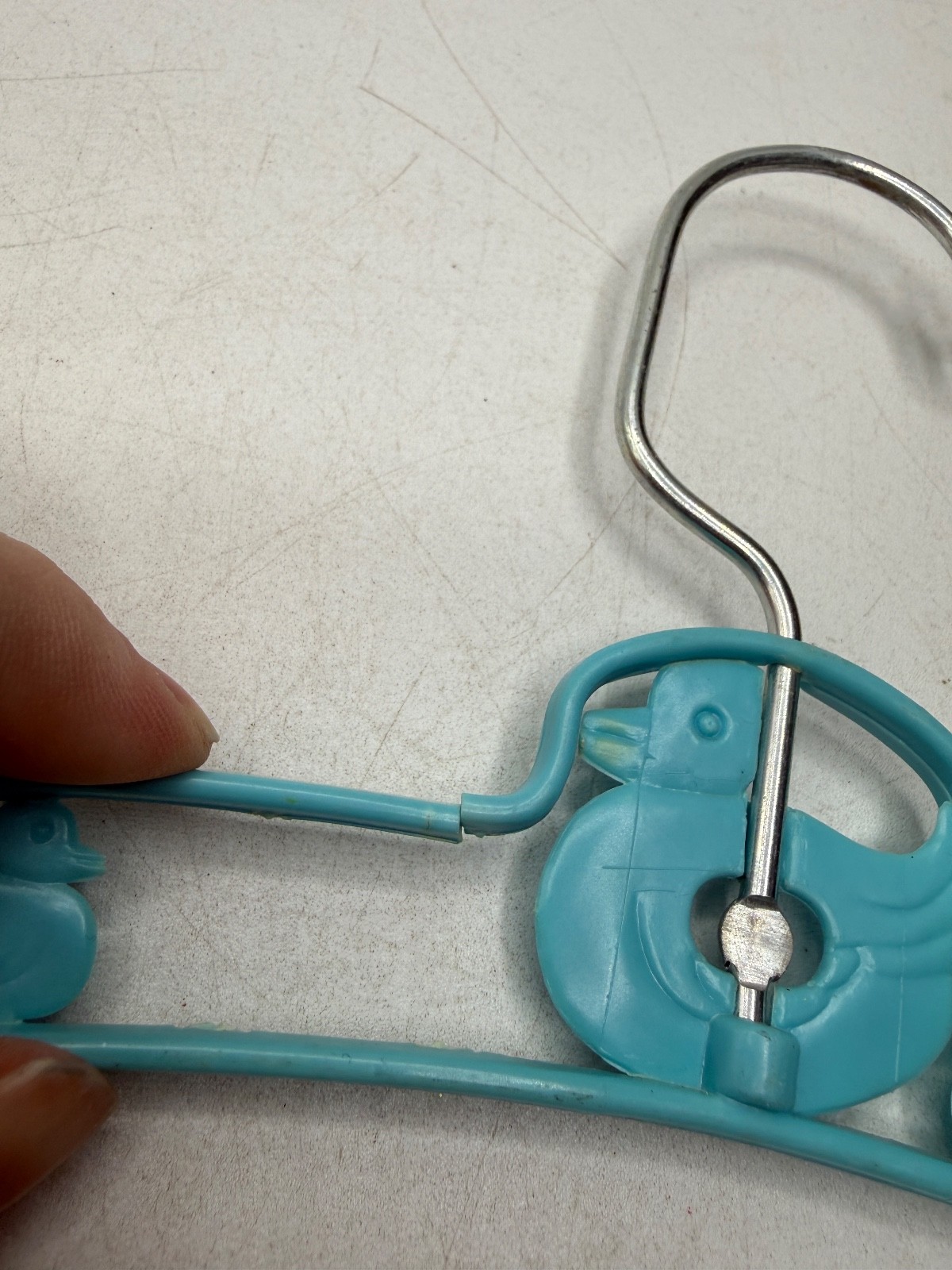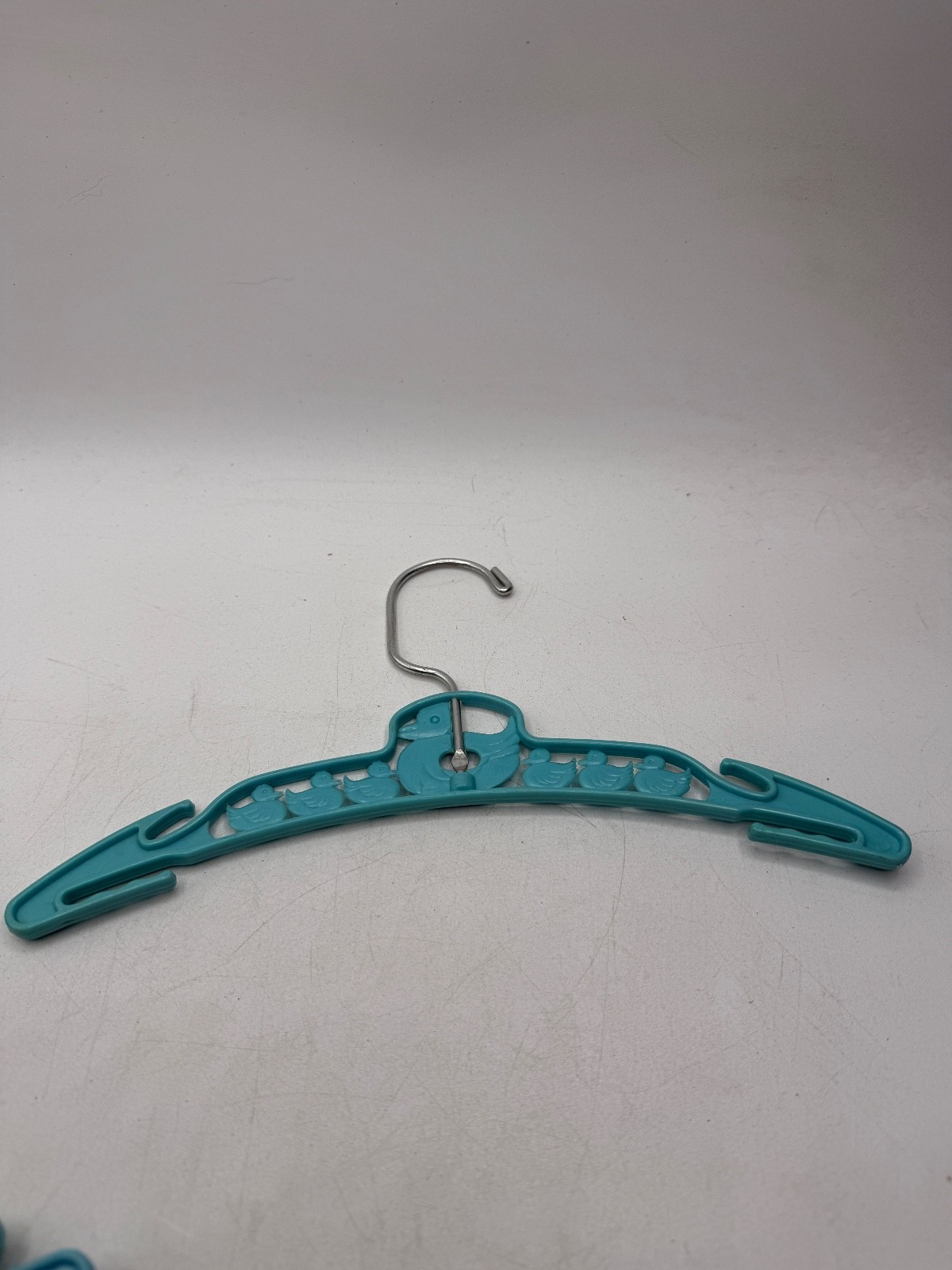 как выглядит Vintage Plastic Metal Child Clothes Hanger Blue Yellow Ducks фото